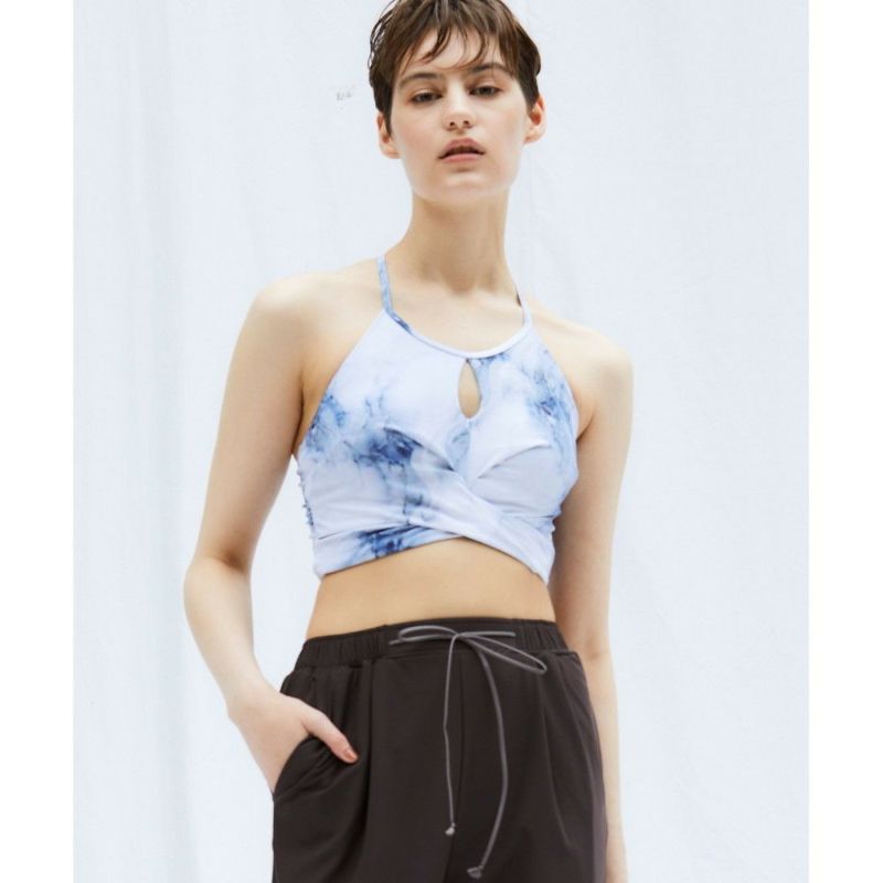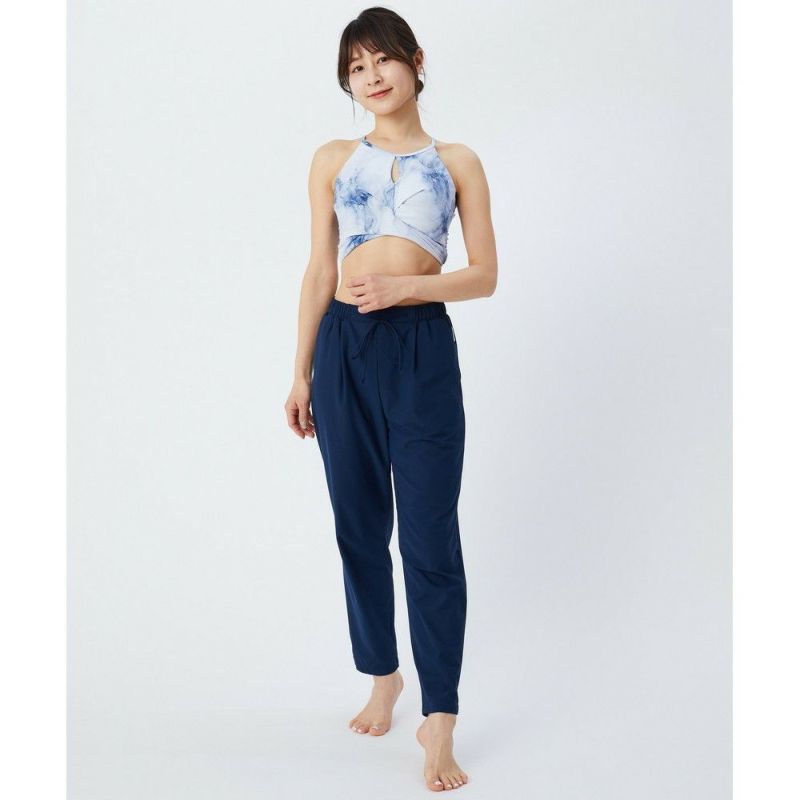 フロントのクロスデザインで胸をソフトに包み、さらにホールド感も追求したブラトップはハードな動きも安心して着用できます。水着素材なのでサップヨガやスイムウェアとしてなど、ビーチアクティビティにもおすすめです。