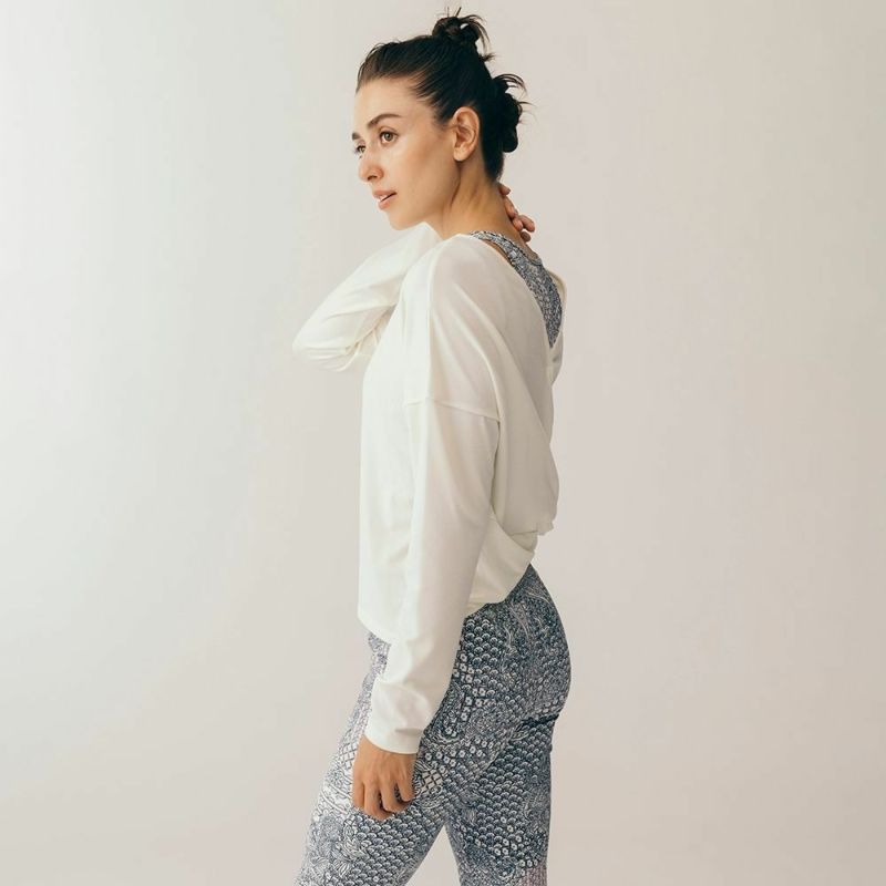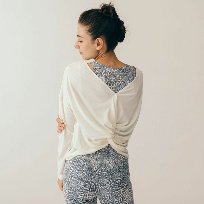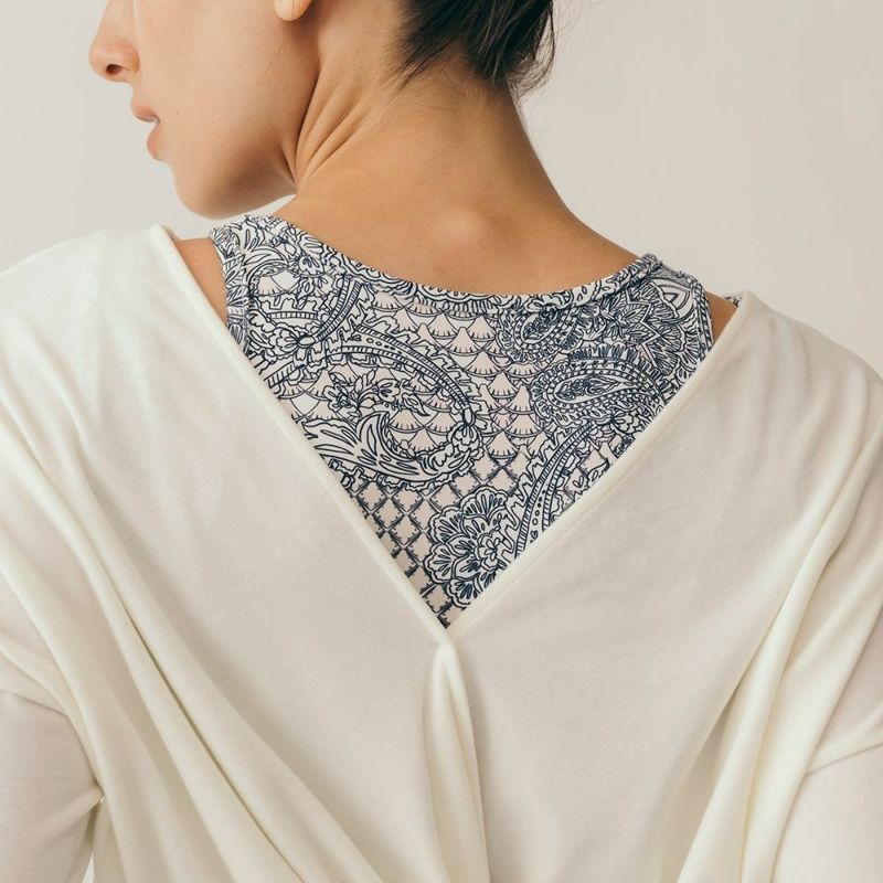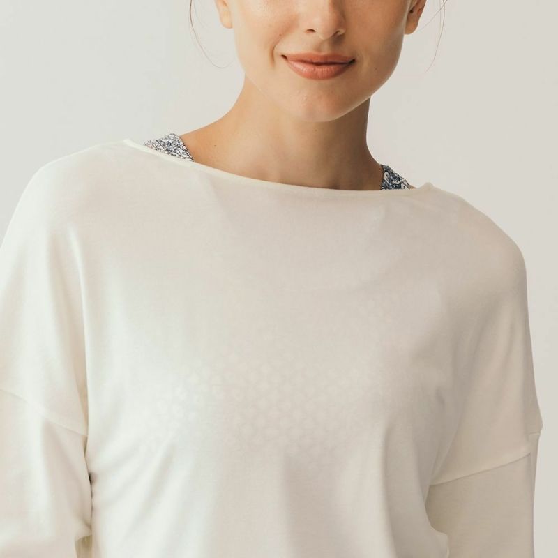 あたたかみのある起毛素材の長袖プルオーバー。表面はなめらかで高級感があり、肌触りのよいソフトな着心地。保温効果があるのでレッスン中の冷え対策やお家でのリラックスウェアにおすすめです。レイヤードが楽しめるバックデザイン。前後2WAYでの着用も可能です。デザインはDOUBLE STANDARD CLOTHINGが監修しています。