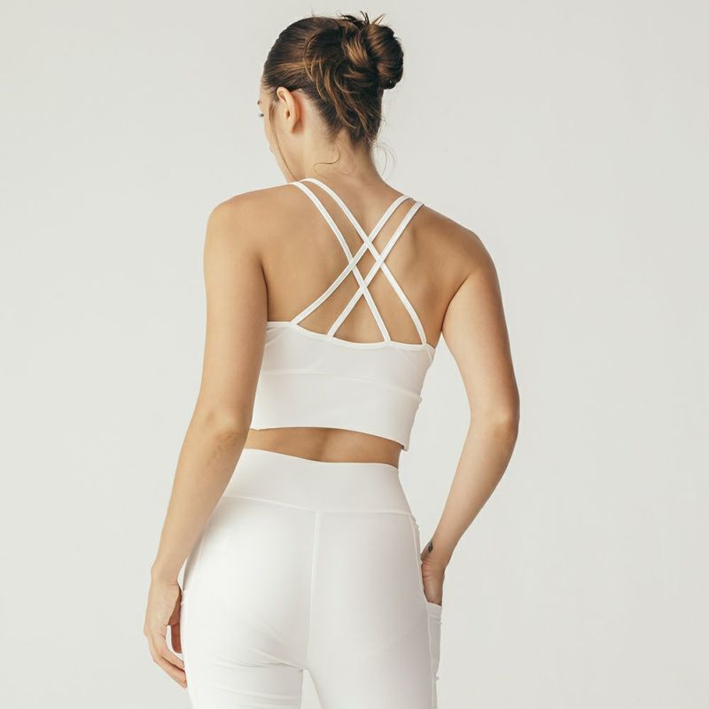 着る人のオリジナリティと美しい動作が引き立つ、モードで上質感のある女性のためのブラトップです。フロント裾のクロスデザインで、甘くなり過ぎないしなやかな女性らしさを演出します。斜めのラインが出ることで着痩せ効果抜群、ストラップはダブル仕様で華奢な印象になります。