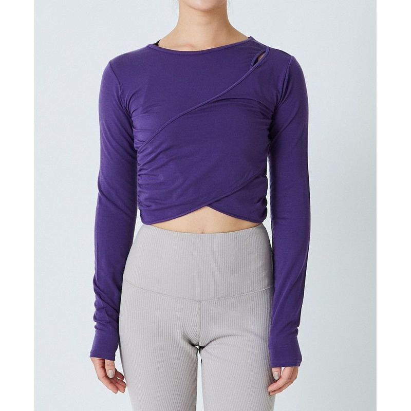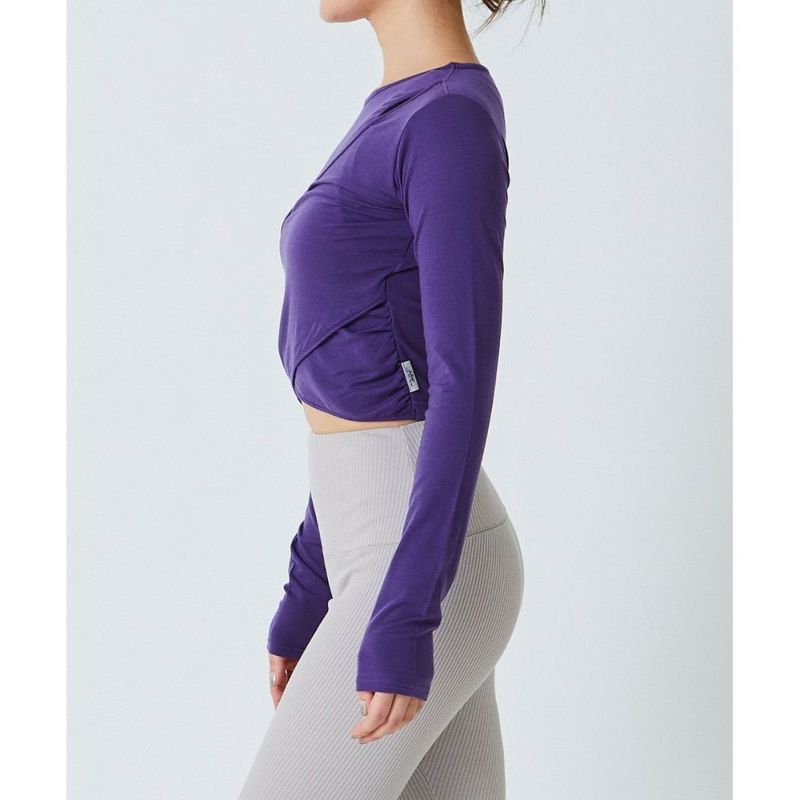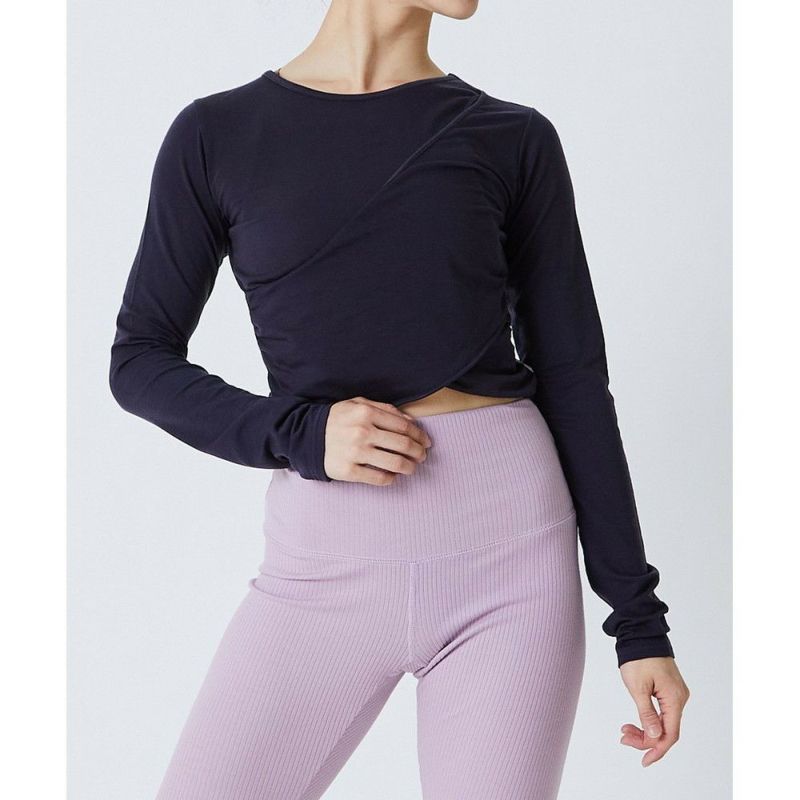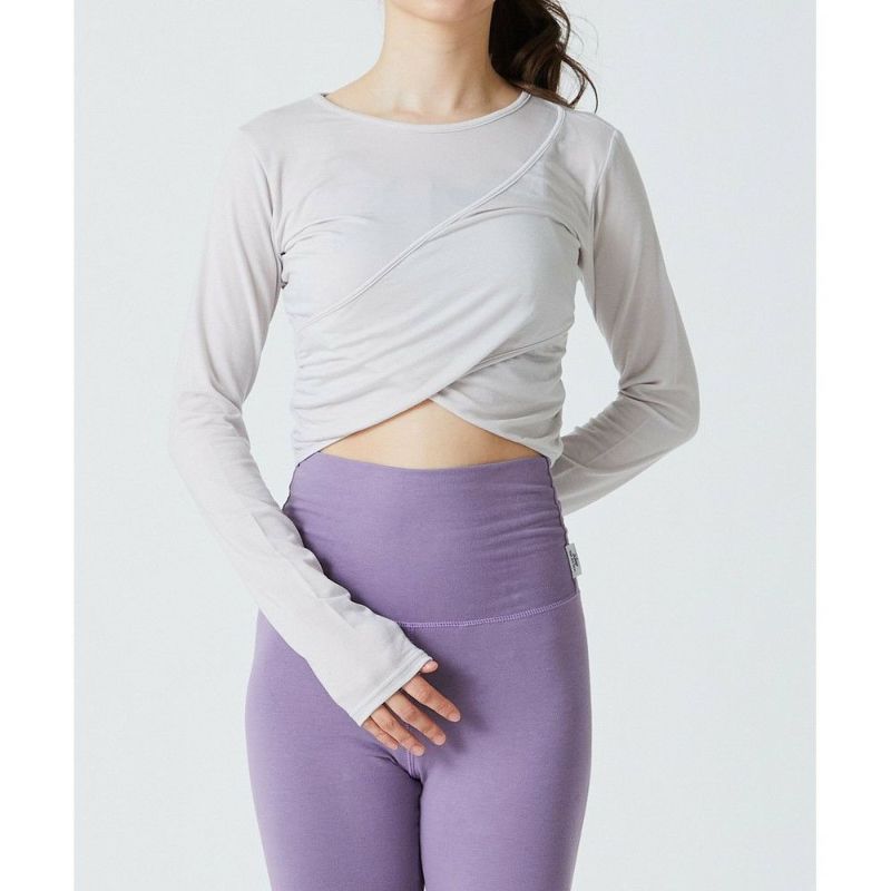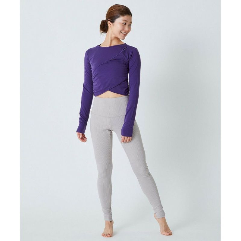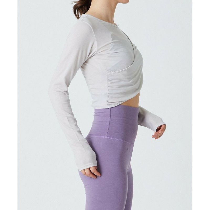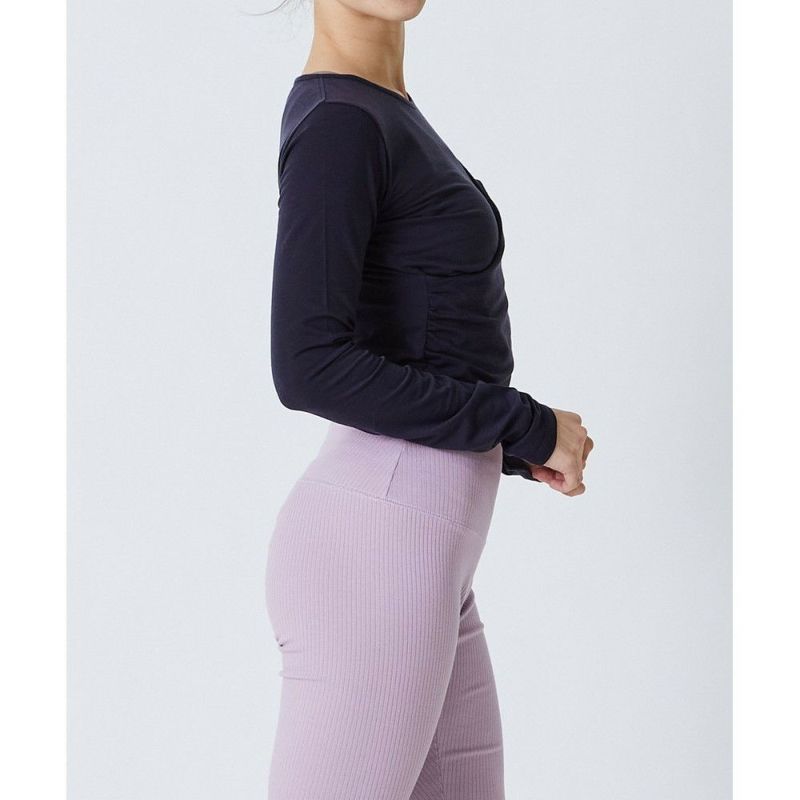 ショート丈のロングスリーブはスタイルアップ見えします。短すぎない着丈なのでジュリエのハイウエストレギンスと合わせるとお腹が出すぎずバランス良く着て頂けます。