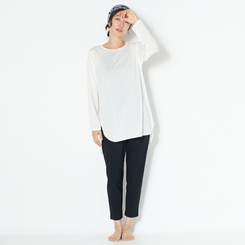 日常着にも取り入れていただきやすいので、おうちヨガやヨガの行き帰りはもちろん、普段のファッションスタイルにもなじむ一枚です。