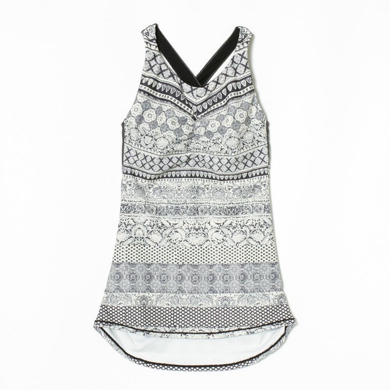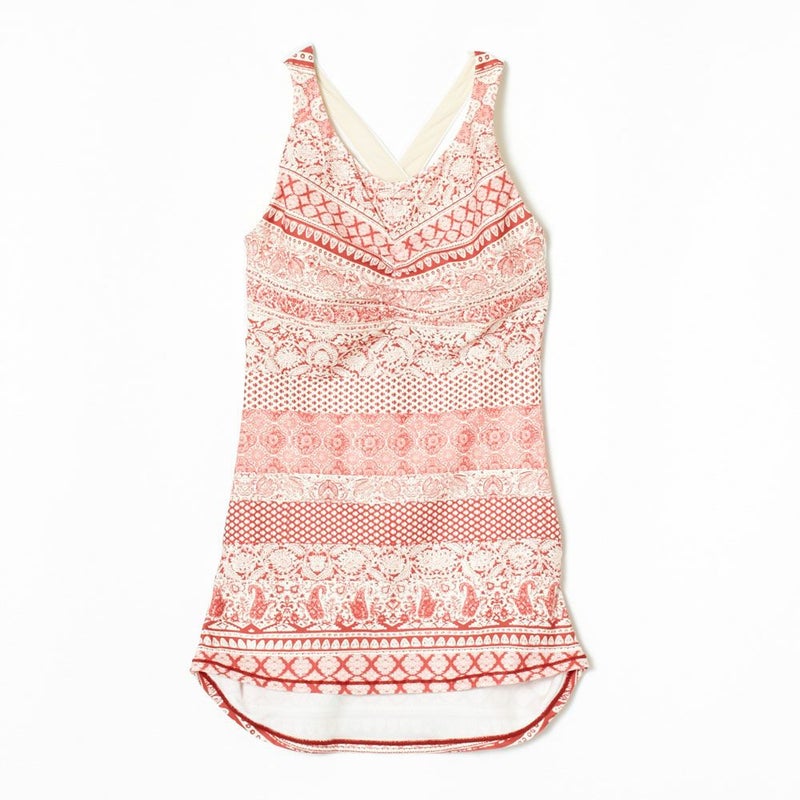 総柄デザインのプリントが視線を誘う、吸水速乾素材を使用したタンクトップ。