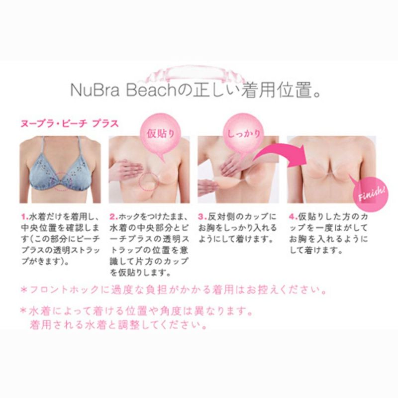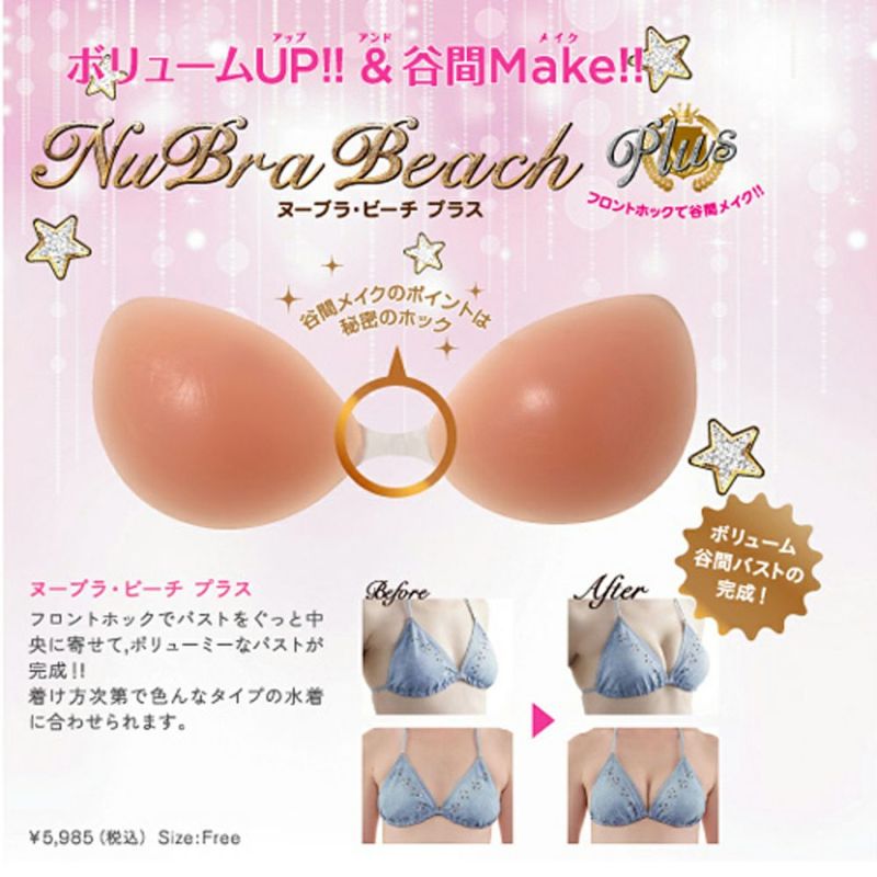 人気のヌーブラビーチにフロントホック機能がプラスされて新登場!医療用シリコンを使用しているのでアレルギーの人にも安心。シリコンの厚みでしっかりボリュームUP!更にフロントホックで左右のバストをぎゅっと寄せれば谷間メイクはバッチリです!