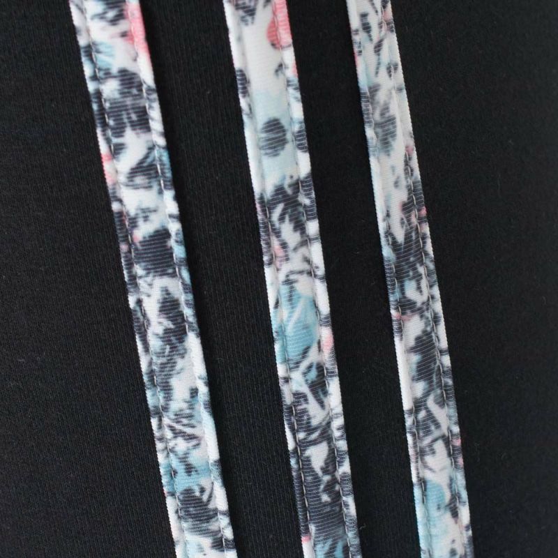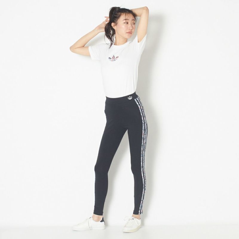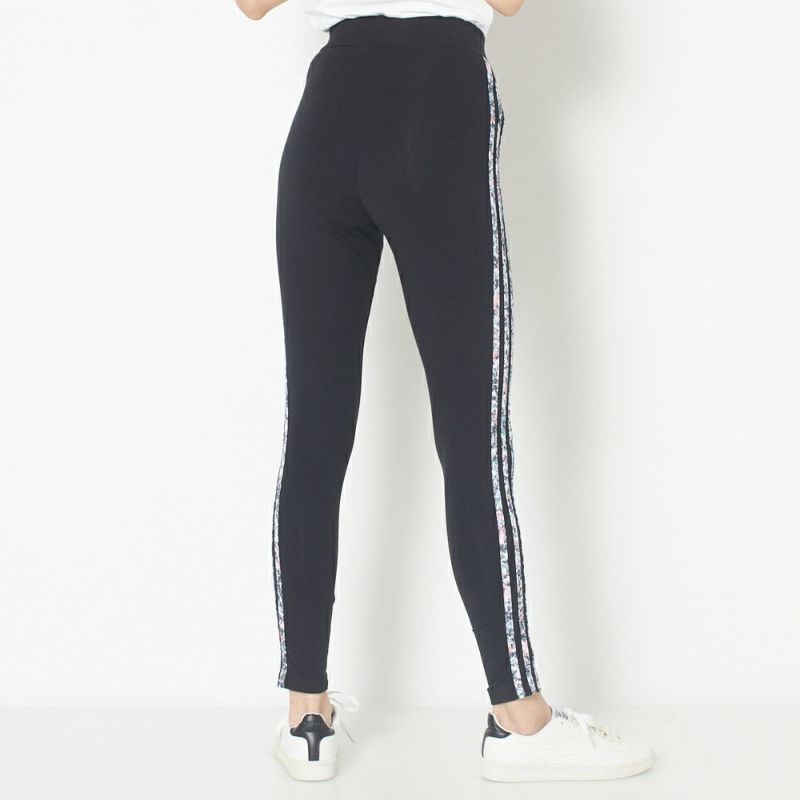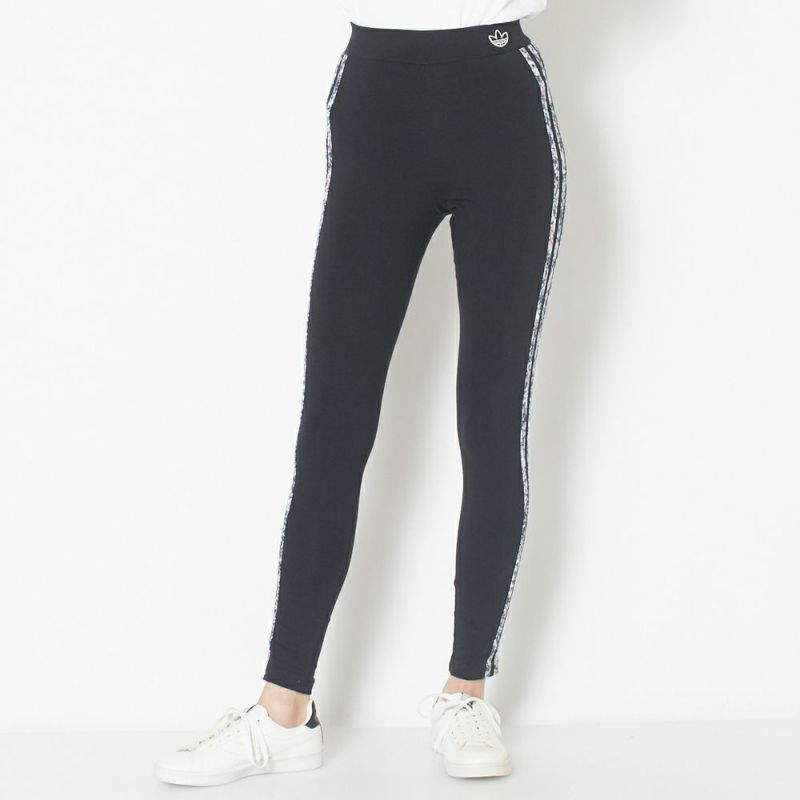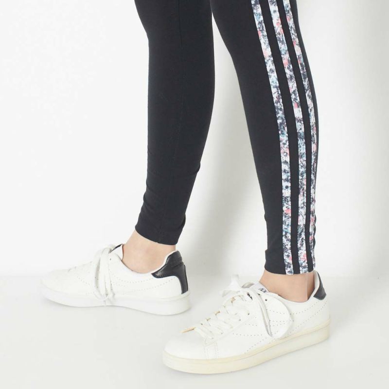 両サイドにブランドデザインのスリーストライプをあしらったタイツ。フローラルプリントのラインはフェミニンな印象です。縦横両方向のストレッチ性に優れているのでフィット感があり、足の曲げ伸ばしの多いランニングやストレッチの動きもストレスなくサポートします。ウエストにあしらわれたロゴワッペンもポイントです。