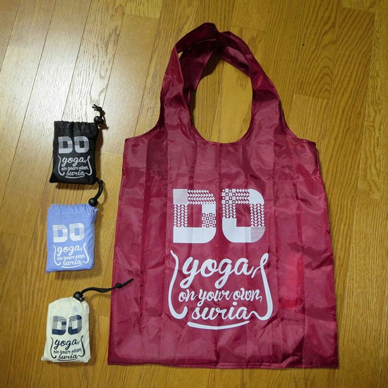 「Do yoga on your own suria」 と、おしゃれなロゴ入りオリジナルエコバッグです。