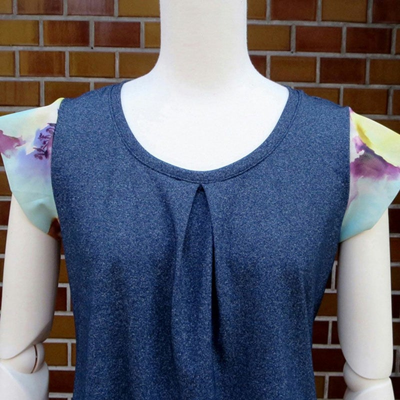 裾と袖のストレッチチュールが、おしゃれに体型をカバーします。