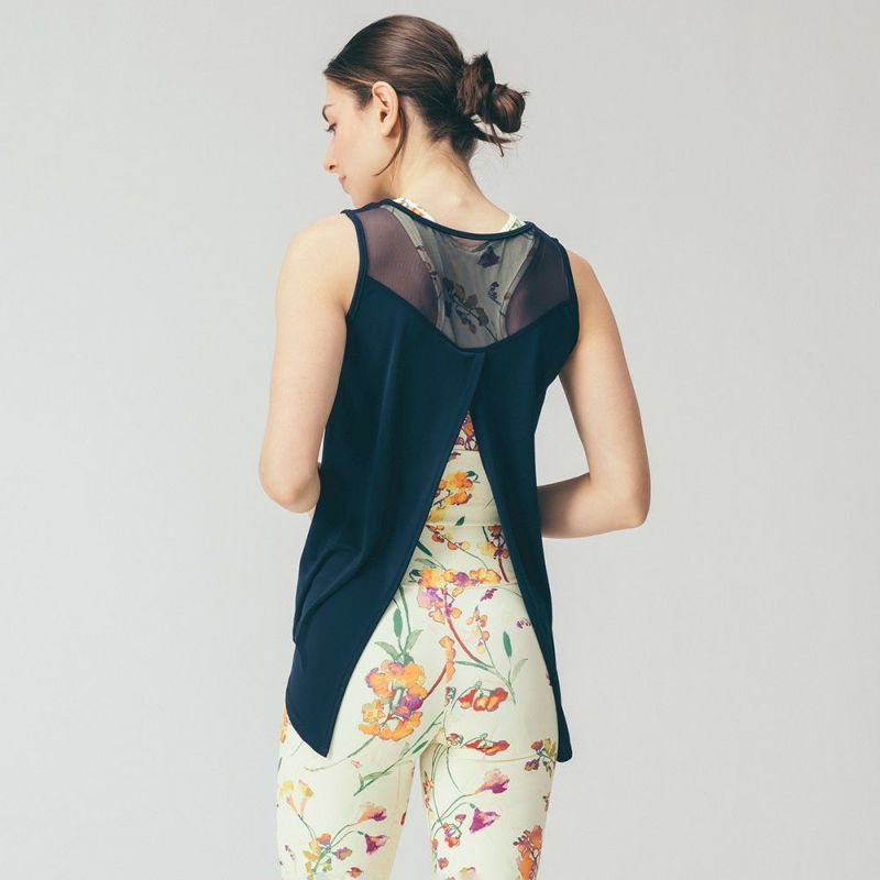 透け感のあるチュール切替が軽やかな印象のノースリーブカットソー。ドライな軽い着心地でレイヤードにぴったりです。背中から大きくあいたスリットが揺れる可愛いシルエット。運動時には後ろのスリットを結んで腰で止めることができます。デザインはDOUBLE STANDARD CLOTHINGが監修しています。