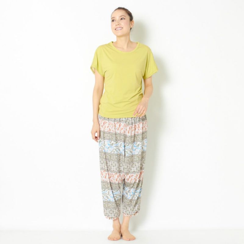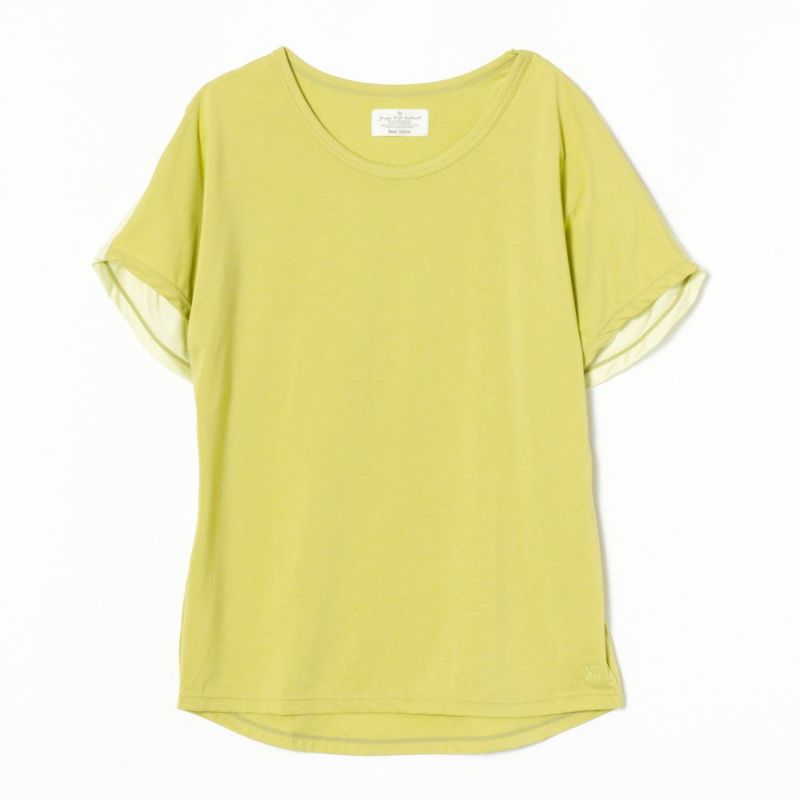 縦横両方のストレッチ性に優れた生地を使用したTシャツ。 後ろ袖のみ別生地で切り替えたシンプルなデザインで、世代を問わず愛用頂けます。 タンクトップやブラトップの上にも重ねられるオーバーシルエットなので、冷えや露出対策にもおすすめです。