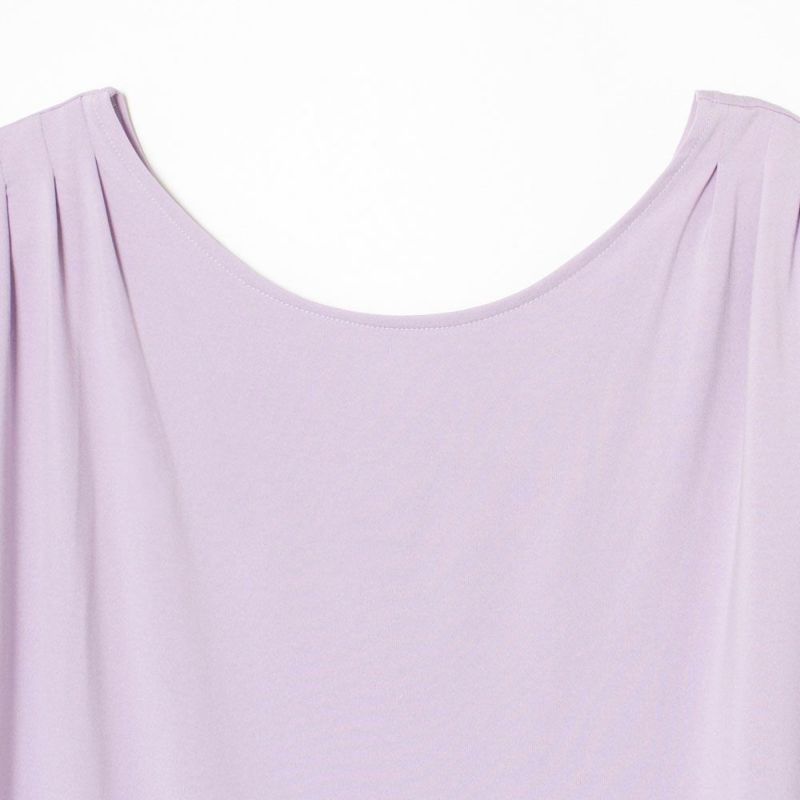 後裾のみギャザーを寄せ、ドレープ感のある印象的なバックスタイルを演出しています。