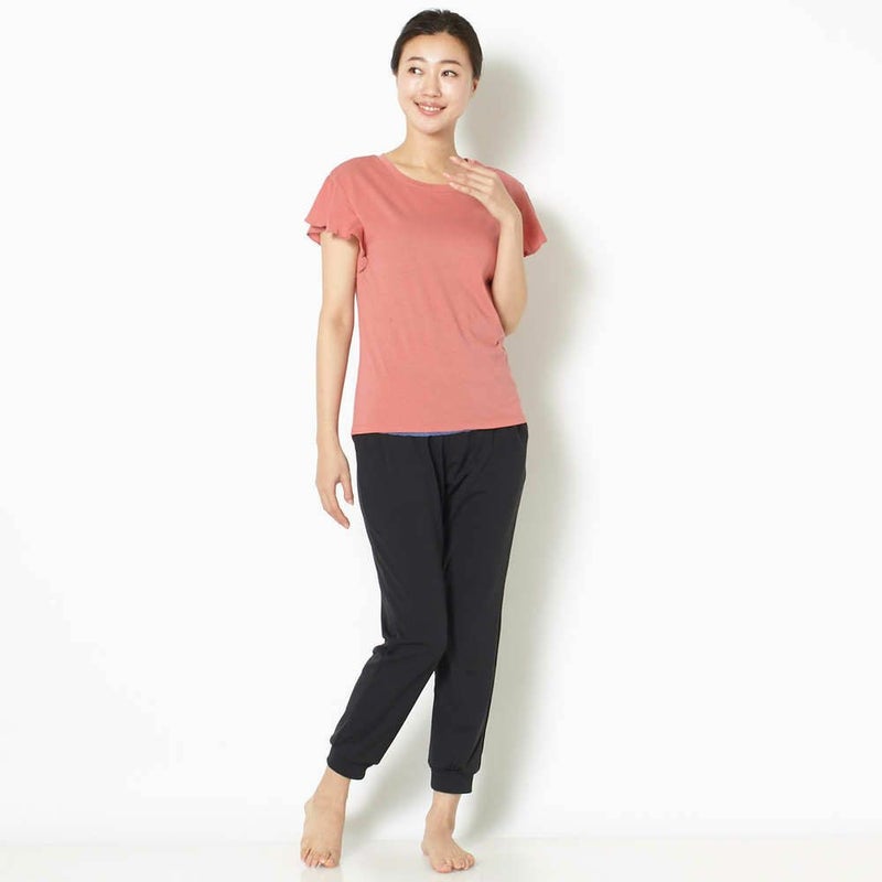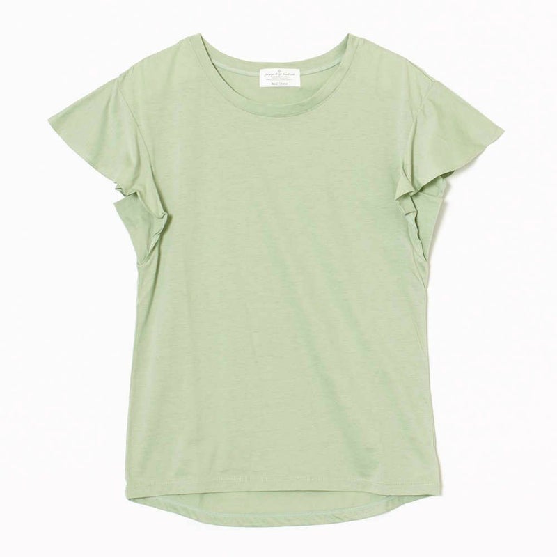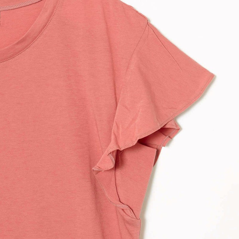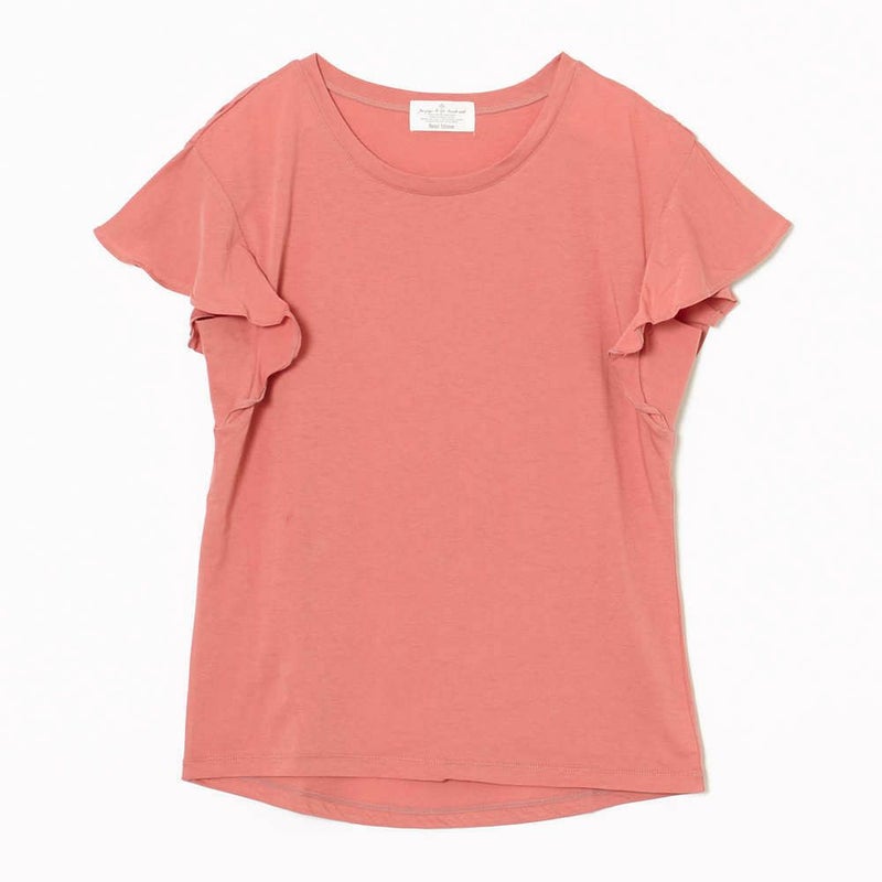 袖部分のフレア切り替えがフェミニンなTシャツ。 シンプルな無地のデザインと落ち着きのある色味で、無地のボトムはもちろん華やかなボトムとも相性良くまとまります。 ボディラインを拾わず、かつだぼつきすぎないややゆったりとしたシルエットは、コンプレックスカバーに一役買ってくれます。