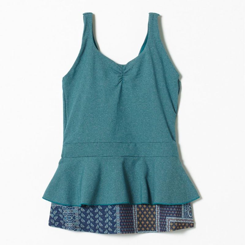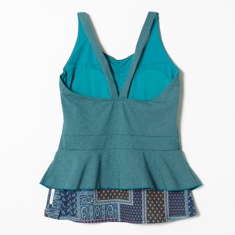 無地のキャミソールの中に柄インナーを合せたような独特のデザインは、一枚でコーディネートを格上げしてくれます。