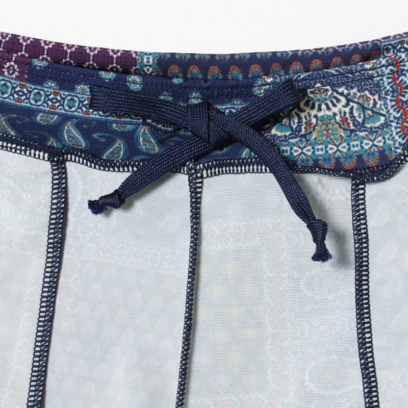 ストレッチ性の高い薄手の素材を使用した、ヨガやストレッチにぴったりなパンツ。 裾部分にはギャザーを寄せているので、穿くだけで自然なニュアンス感を演出してくれます。 無地のトップスとのコーディネートも華やかに見せてくれるアイテムです。 ウエスト部分には、サイズの調節ができるドローコードが付いています。