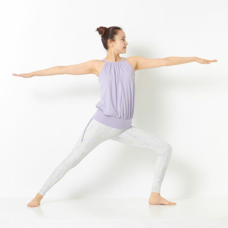 ナノシア加工によって気になる汗のシミを目立ちにくくしてくれるタンクトップ。 吸水速乾性にも優れているので、ヨガ中もサラサラとしていて快適な着心地を約束してくれます。 インナーブラが付いているので安定感もあり、伸縮性の高い生地を使用しているので体の動きに合わせて伸び縮みしてくれる優れものです。