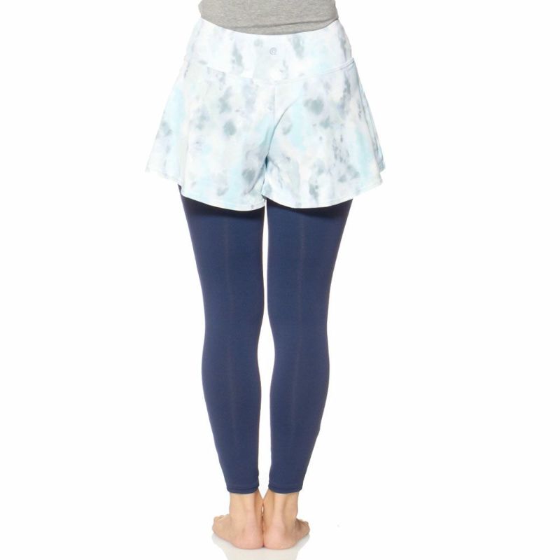 プリントの入ったショーツと、無地のレギンスのセットは一枚でおしゃれなボトムのレイヤードが完成します。