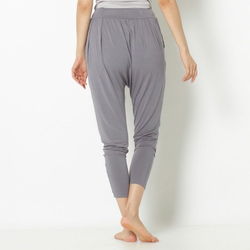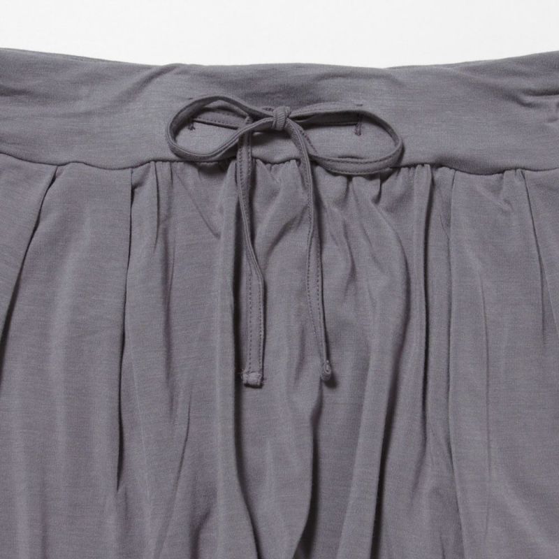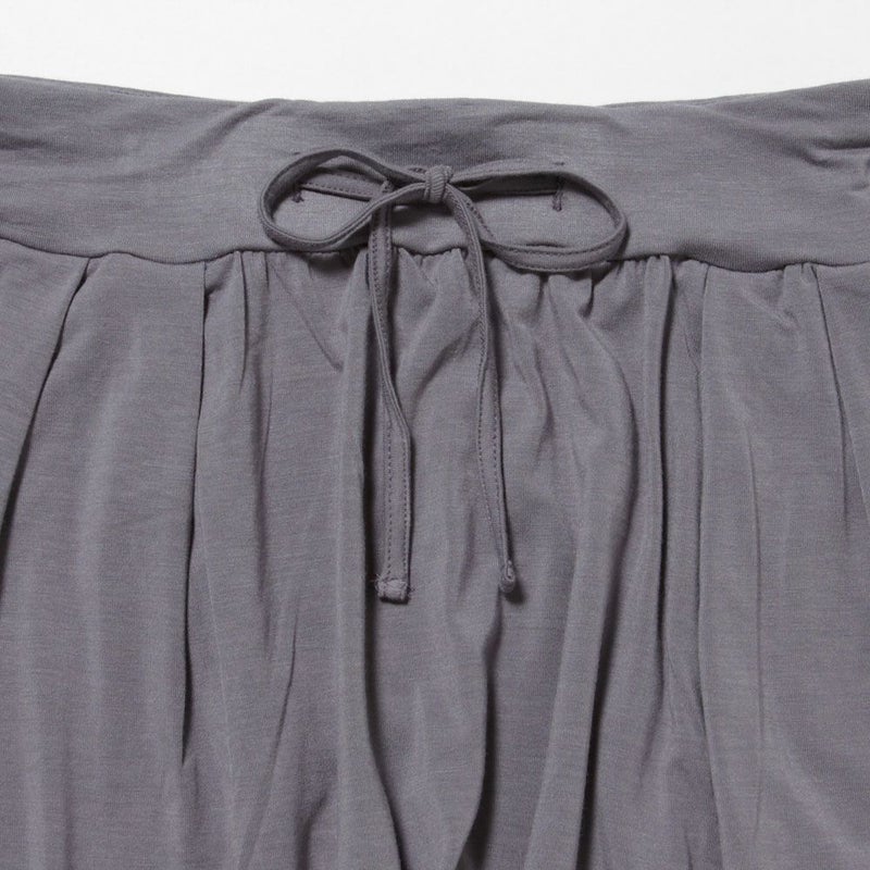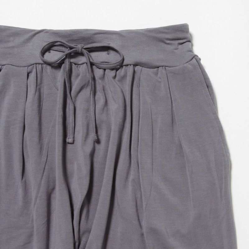 天然の竹素材を使用し、吸水性が高く、肌触りもとても良く、さらに抗菌作用にも優れたパンツ。 ウエストにゴムが入っているので脱ぎ穿きしやすく、滑らかな素材は穿き心地も良好です。 サルエルのようなゆとりのあるシルエットは動きやすさと、通気性の良さを両立しています。