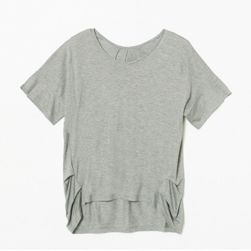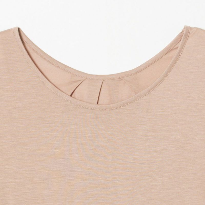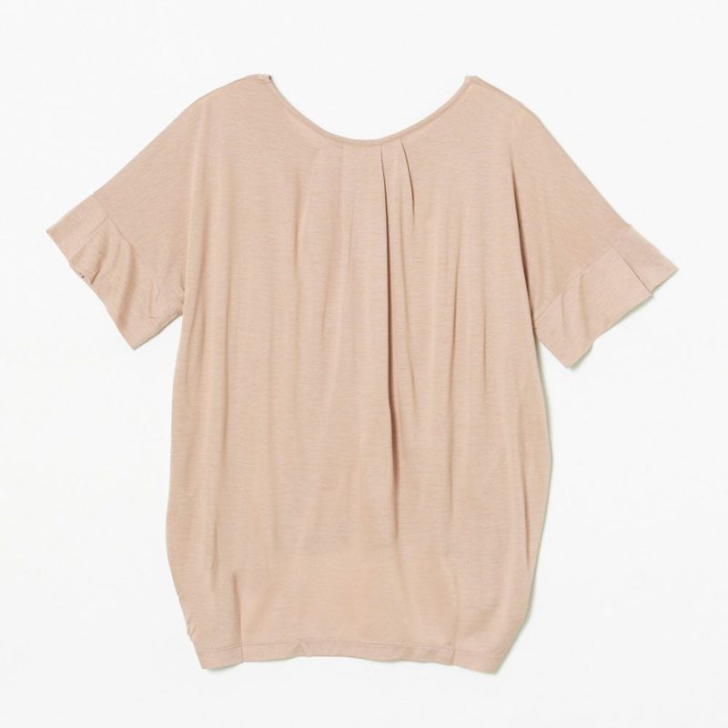 後襟や袖、両サイドの裾に寄せられたタックが、シンプルながら印象的なデザインに見せてくれます。