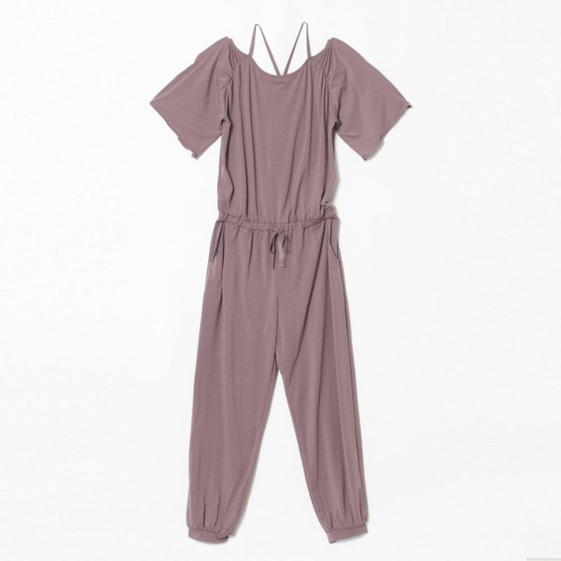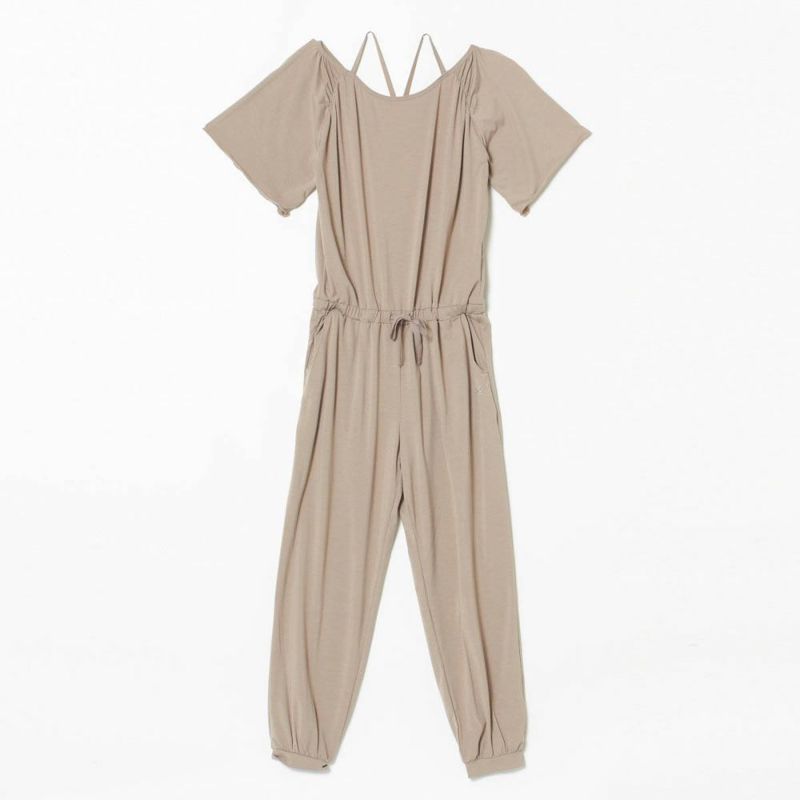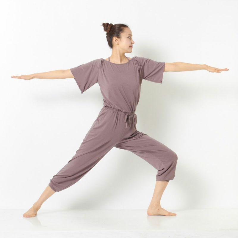 とても滑らかで肌触りの良い生地を使用したオールインワン。 ストレッチが効いた、動きやすさも抜群なアイテムです。 半端丈仕様なので通気性が良く、裾にゴムを入れ安定感も高めています。 これだけでシンプルかつ実用性の高い、ヨガコーディネートが完成する、持っておくと何かと便利な一枚。