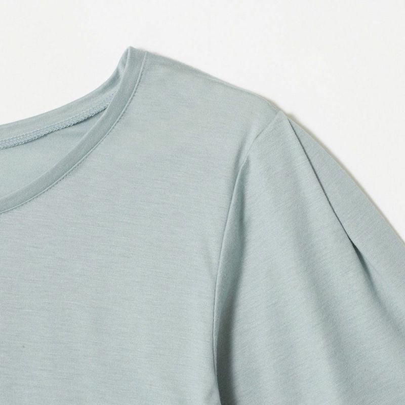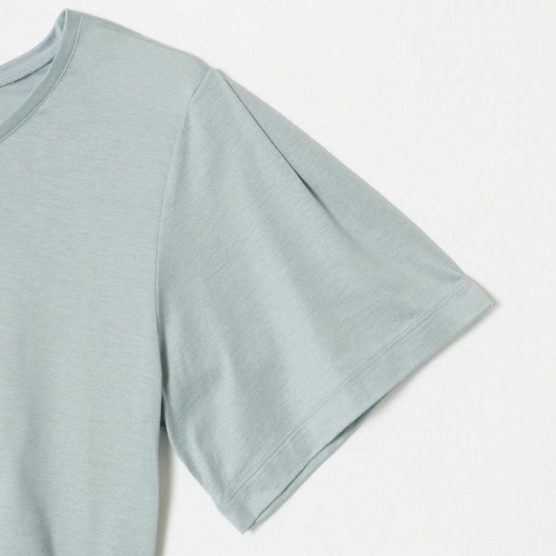 バックに入った切り替えが印象的なトップス。 切り替え部分は生地が軽くなっているので通気性が良く、蒸れる心配が少なくなっています。 少しゆとりのあるシルエットなので、動きやすく、滑らかな肌触りで着心地も抜群です。 日本製の作りの良さも魅力です。