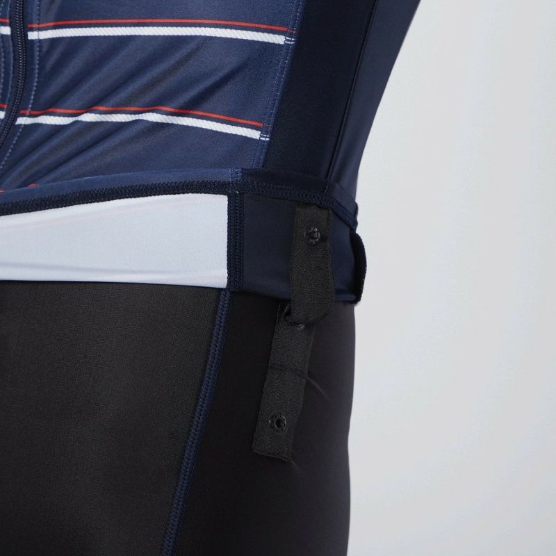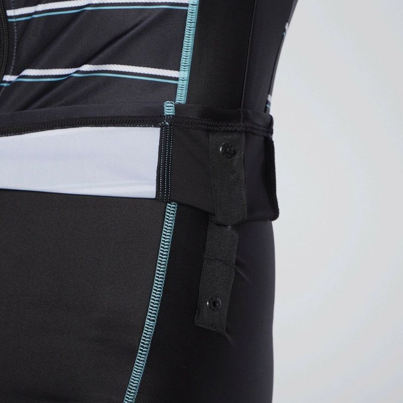 切り替えの視覚効果で脇ラインがシャープに。ボトム前部分は伸びの良い裏地付。