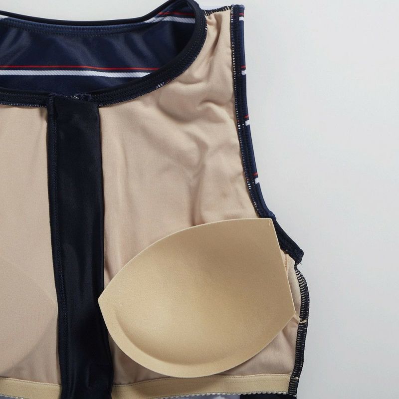 ファスナー付で着脱が楽なセパレーツ水着。シンプルなロープボーダー柄です。