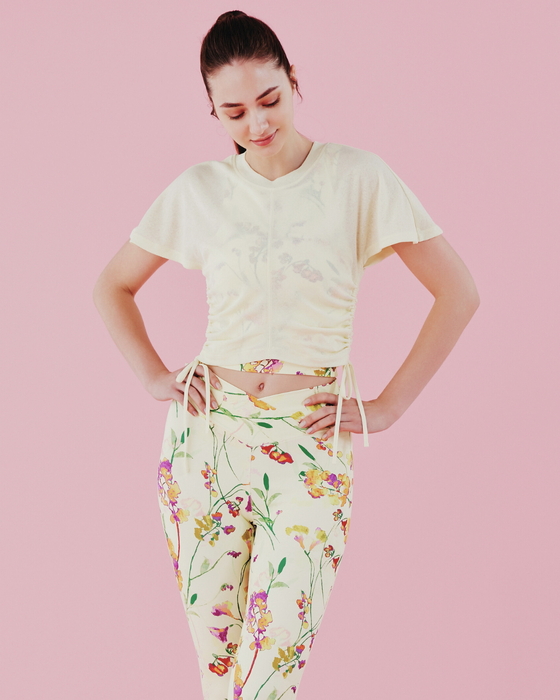 春の季節にぴったりな花柄や、 カラフルなヨガウェアをセレクト。 軽やかに動けて気分も上がる、 春らしいアイテムをご紹介します。 ヨガの気分を明るくしてくれる、 イエローでハッピーなコーディネート。 春の空気をまとって気持ちも前向きに。 Tops ¥9,900 Leggings ¥14,300