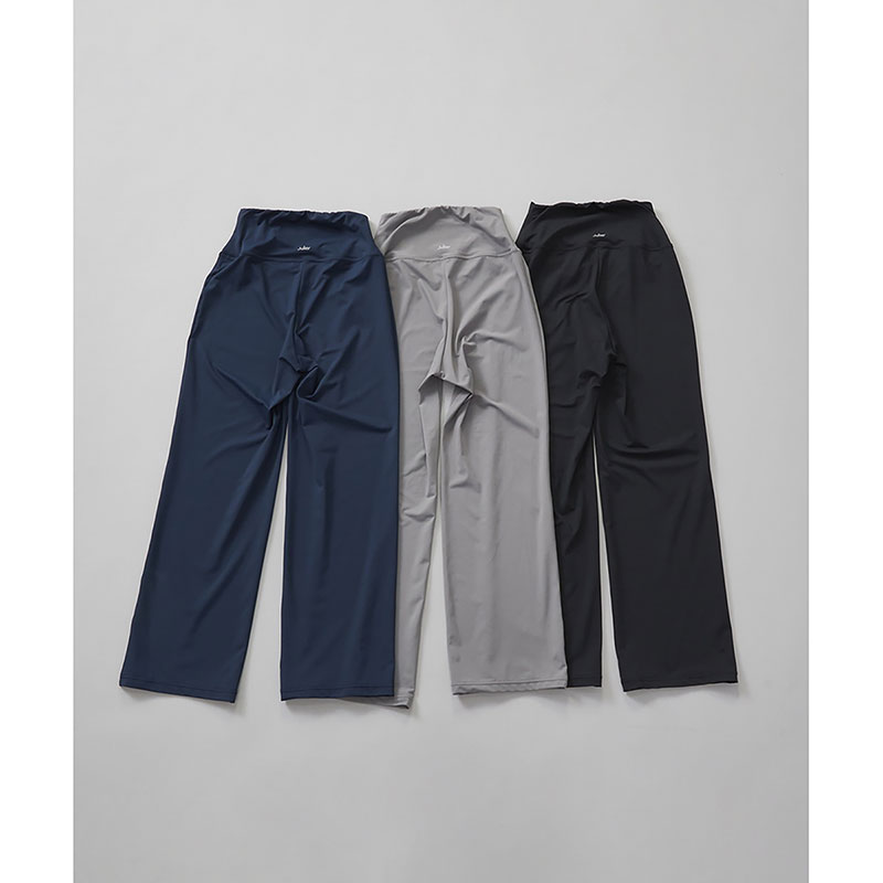 レギンスが苦手な方に人気のフレアパンツに、新色が登場!軽やかで伸びのよい素材にUVカット機能を備え、快適なはき心地と美しいシルエットを両立する高機能な一本です。お腹まわりはすっきり見せつつ、ハイウエストが優しくフィット。脚のラインを拾いにくいシルエットなので、ヨガやワークアウ トはもちろん、リラックスしたい日にぴったり。着丈の長いトップスを合わせれば、より体のラインを強調せずに着用できます。
