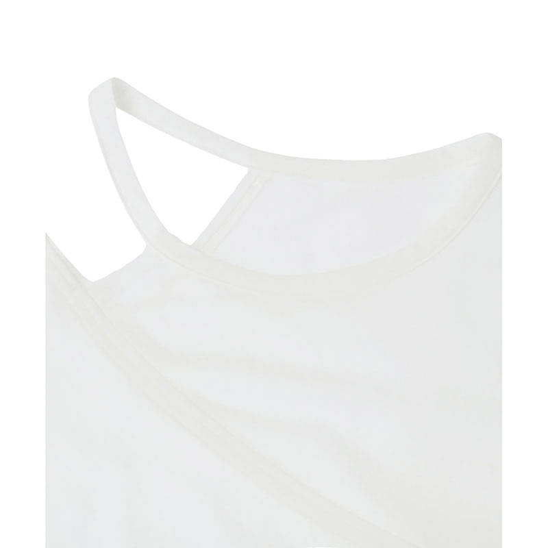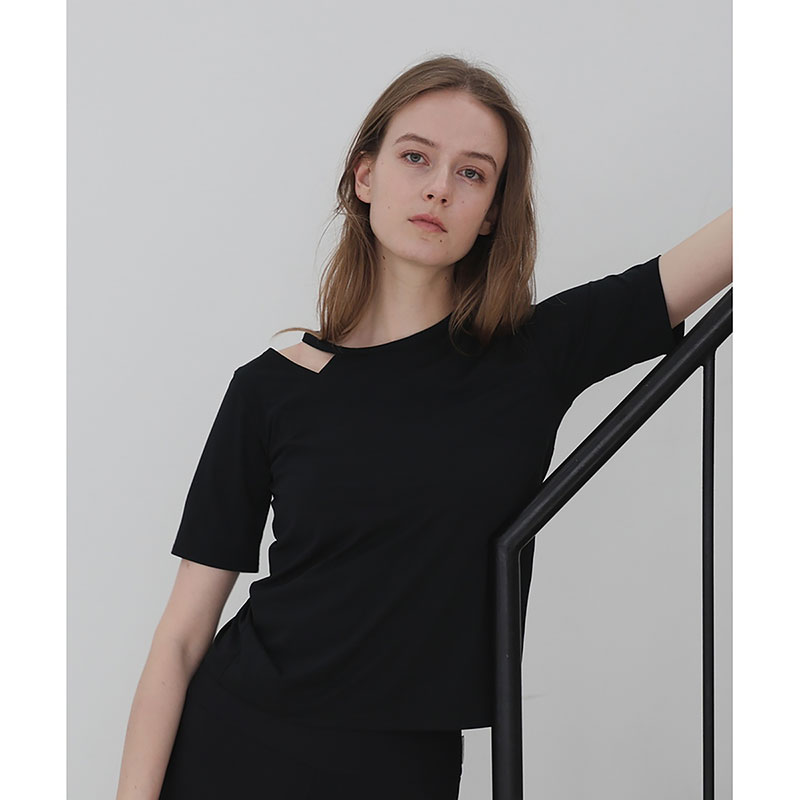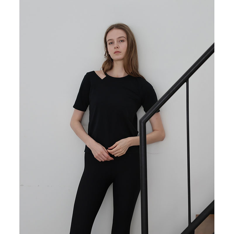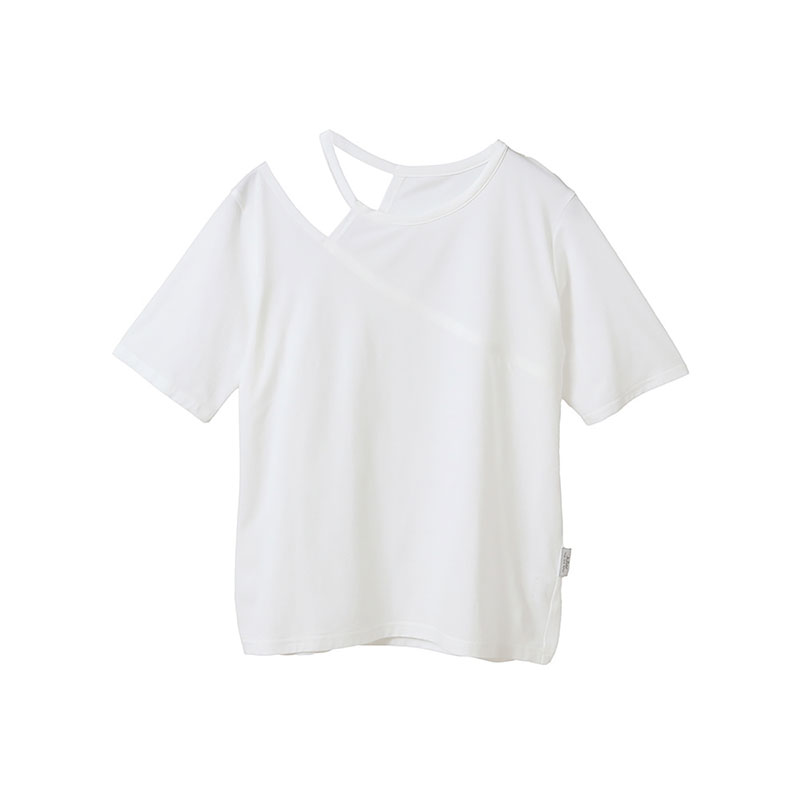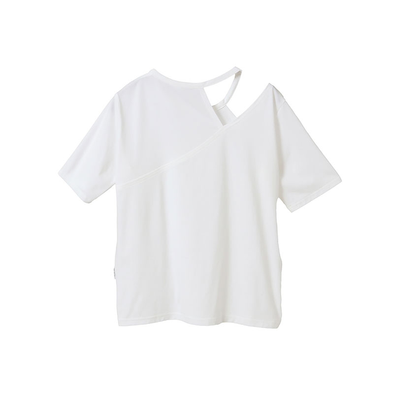 一枚でおしゃれ上級者見えするアシンメトリーな半袖トップス。片側だけカットを施したデザインで、 さりげない肌見せが大人の抜け感を演出。前後で異なる開き具合もこだわりポイントで、後ろはやや広めに開いていています。細ストラップのインナーを覗かせるのがおすすめ。ストレッチ・速乾・UV カットなど、暑い季節に嬉しい高機能素材を使用し、着心地も快適。長すぎず短すぎない絶妙な丈感で、どんなボトムスとも好相性です。