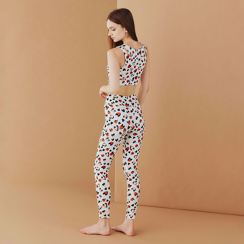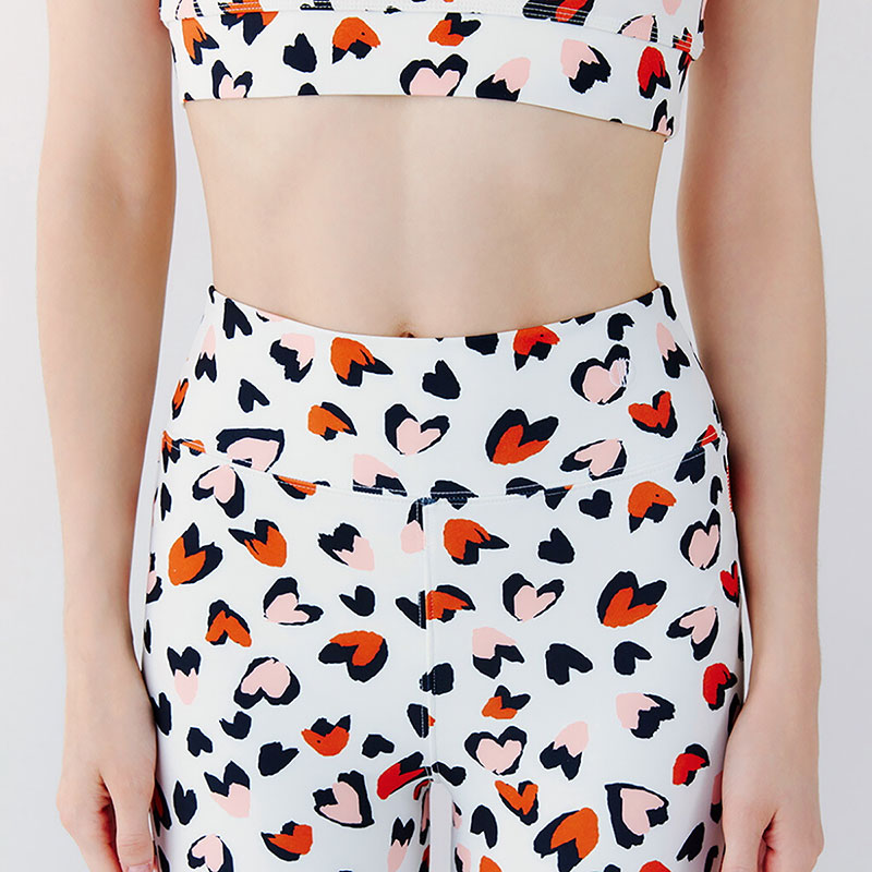 リジーオリジナルのプリントレギンス。甘すぎないレオパード調のハート柄で、オレンジ系のハート柄がヘルシーな印象にしてくれます。ウエストのゴムを無くし、締め付け感の少ない着心地に仕上げています。伸びがよくストレッチが効いており、なめらかな着心地です。デザインはDOUBLE STANDARD CLOTHINGが監修しています。