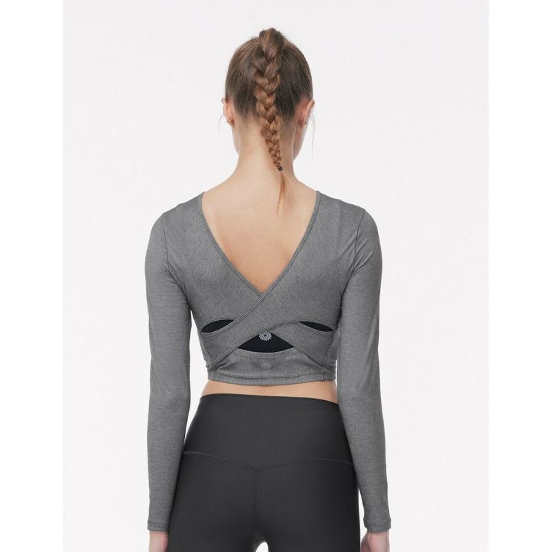 フェミニンなデザインが可愛い長袖トップス。クロップド丈デザインなのでハイウエストレギンスとの相性抜群です。いつでも自由に動き回れる長袖トップスはアクティブなヨガの動きをサポートします。環境に優しい再生繊維(テンセル)素材入りなので肌触りも優しく、着心地がとてもソフト。薄手で伸びのよいストレッチ素材です。カラーは再生繊維(テンセル)素材の良さがわかる、こなれグレー。