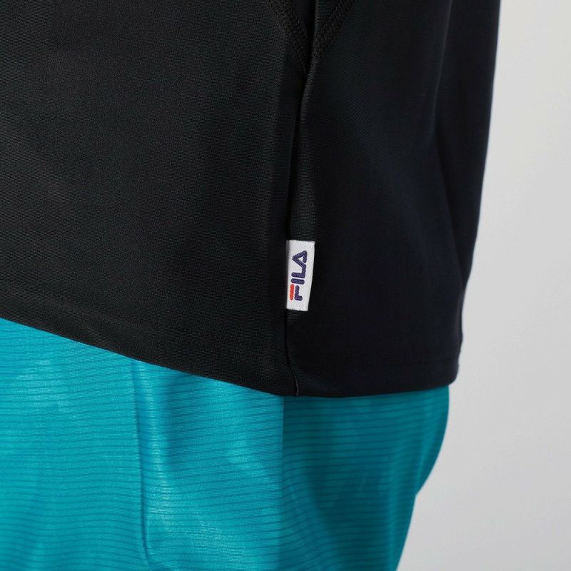 シンプルな無地ベース。袖部分にFILAのロゴ入り。裾ラインの後ろ側が長めのスポーティなシルエット。