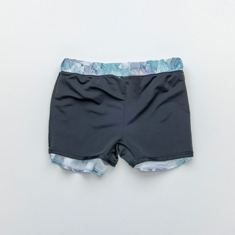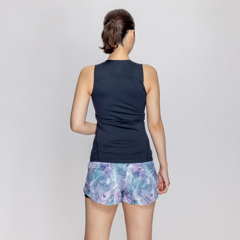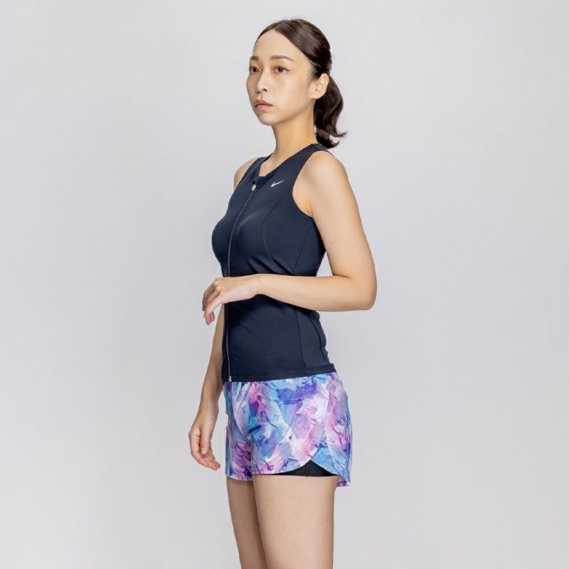 ヒップラインが気になる方におすすめ、華やかなプリントの「2in1」パンツのフィットネス水着。ボトムスが腰回りのボディラインを目立たせずに、ふんわりしたシルエットを保ちます。トップスはジッパー付きで着脱簡単、トップスとボトムスを留めるスナップボタンがめくれを防止して安心。ブラカップ付属。ボトムスは裏地付き、股下7cm(Mサイズ)。