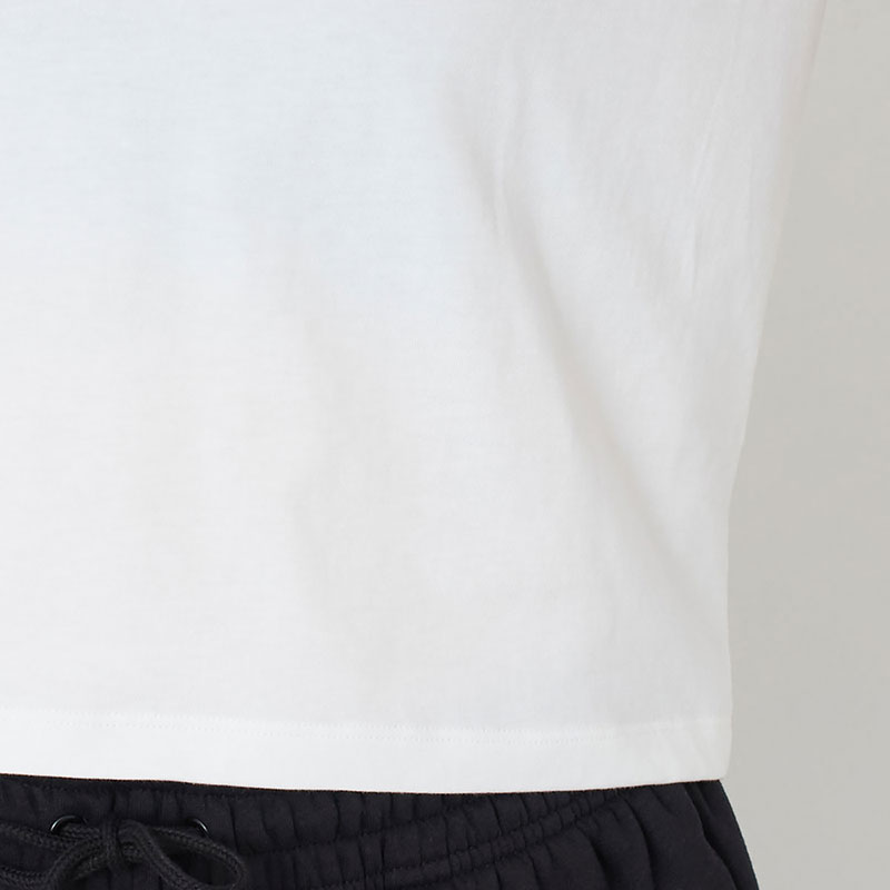 襟ぐりと袖口の配色切り替えデザインが目を引くTシャツ。肌触りの良いコットン素材のカットソー生地で仕立てた、運動時はもちろんタウンユースにもおすすめの一枚です。コンパクトな丈感とボディラインを拾わないゆとりのあるシルエットで、今っぽい着こなしが叶います。