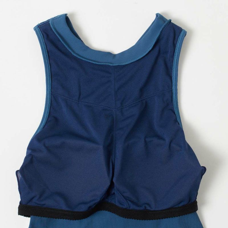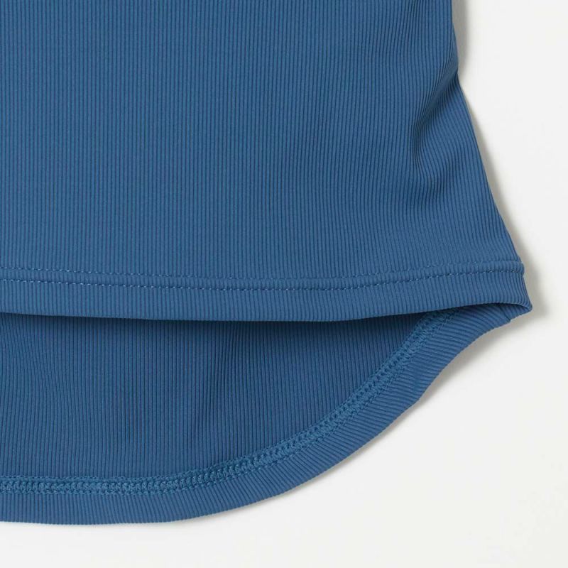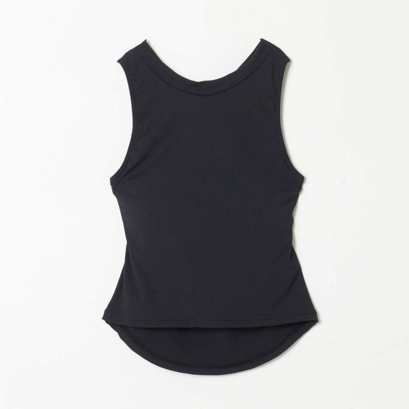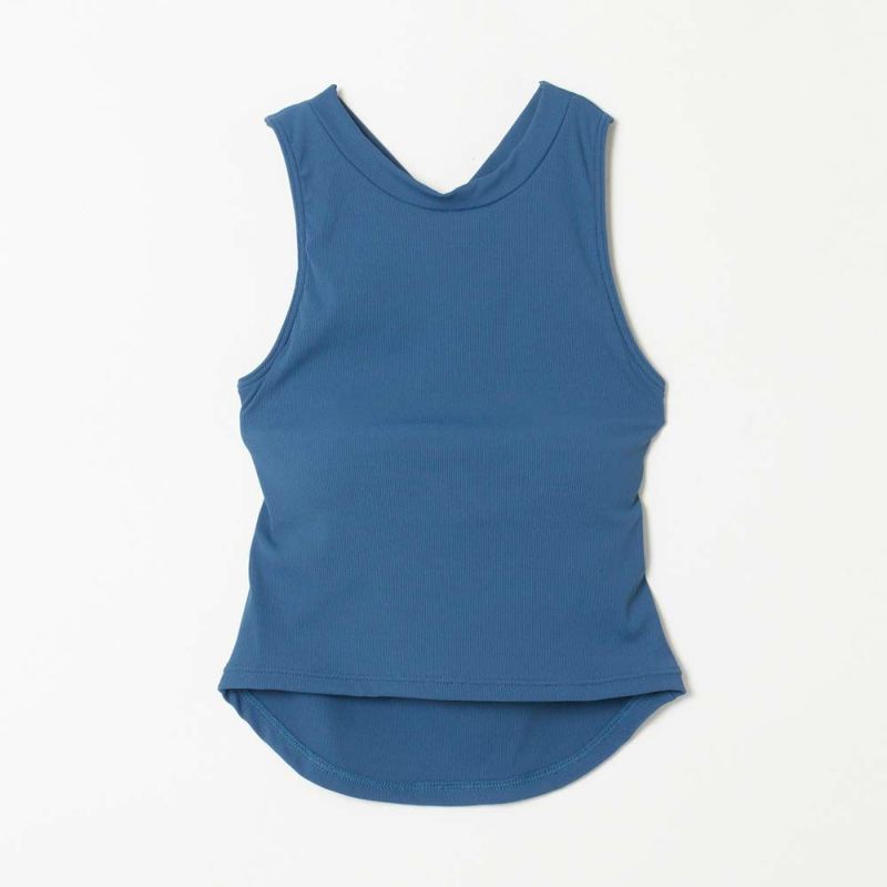 フィット感のあるリブニット生地で仕立てたタンクトップ。バッククロスデザインが女性らしい肌見せを叶えてくれます。パッド取り外し可能なインナーブラ付きなので、一枚で安心して着られます。動いても捲れて背中が出にくい、ラウンドカットのバックヘムもポイントです。