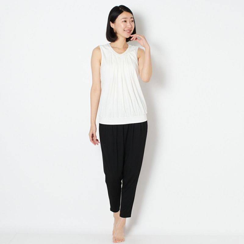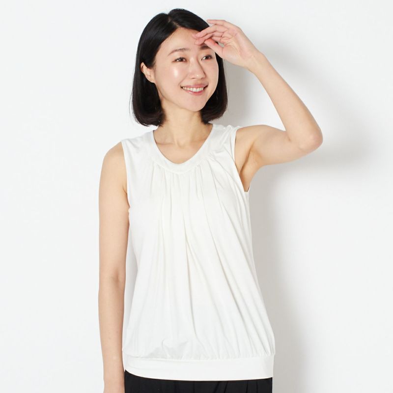 ストレッチ性が高く着心地の良い、インナーカップ付きのタンクトップ。背中が少し開いていて、程よい肌見せが可能です。ゆったりとしたシルエットで気になる体型をカバーできます。裾に切り替えを施しているので、捲り上がりが気にならないのも魅力です。