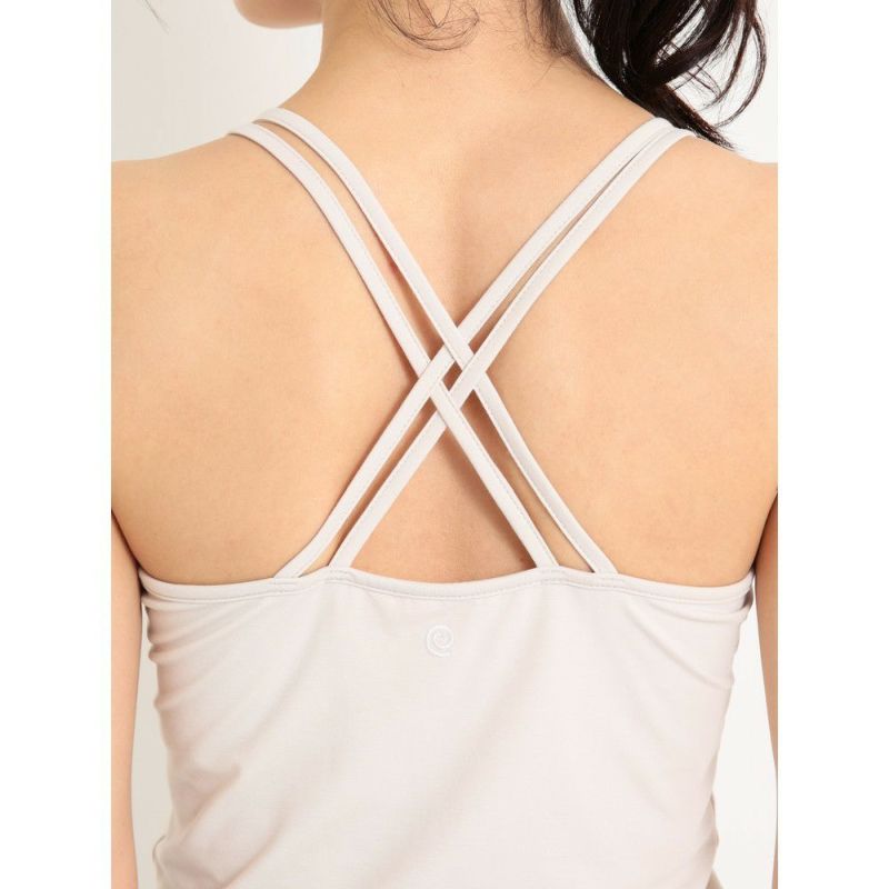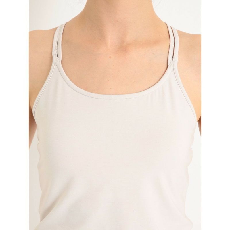 華奢な肩紐で首や肩周りを綺麗に見せてくれるキャミソールです。ベア天なのでストレスフリーな伸縮性と肌触りです。