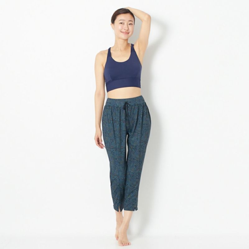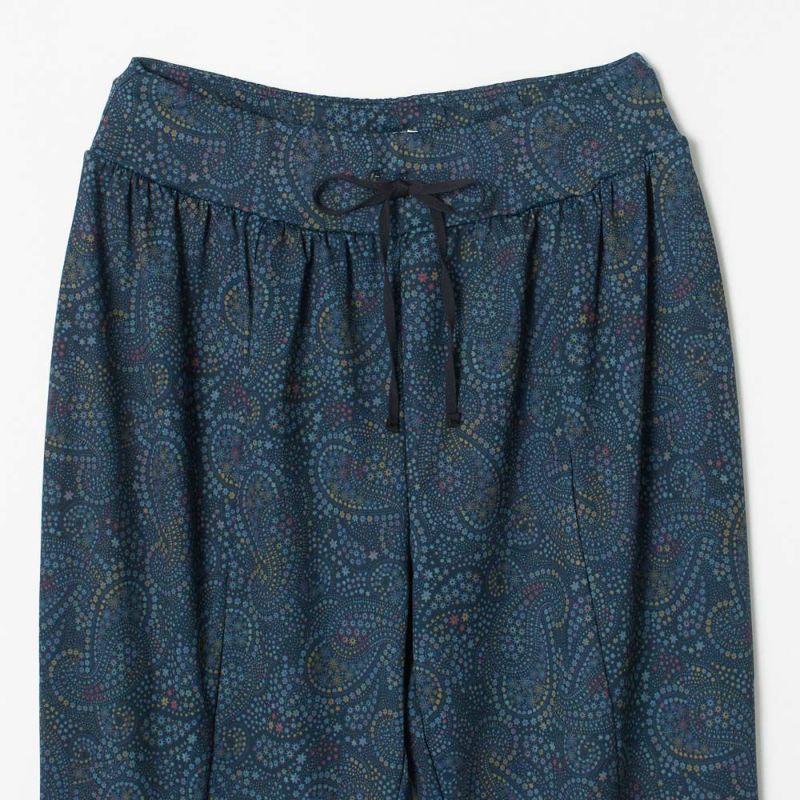 優れたストレッチ性とゆったりとしたシルエットで、リラクックス感のある着心地のパンツ。カラフルなペイズリー柄がフェミニンな一枚です。ウエストはお好みに合わせて調節できるゴム+ドローコード仕様になっています。