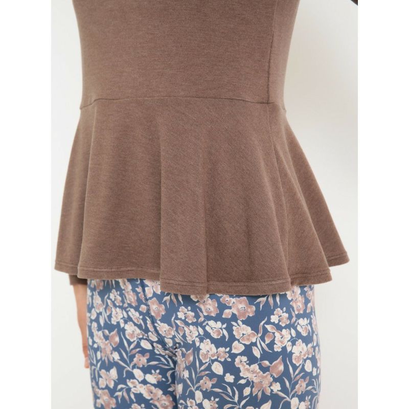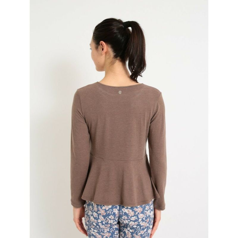 可愛くなりすぎない、大人な雰囲気のペプラムデザイン。ウエスト位置を少し高めに、程よくシェイプをきかせたシルエットと、デコルテラインをキレイに見せてくれるネックラインで、女性らしさと程よい抜け感を演出します。
