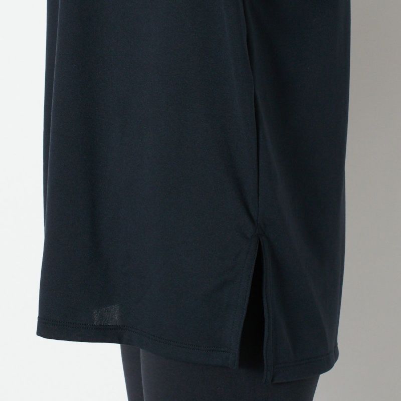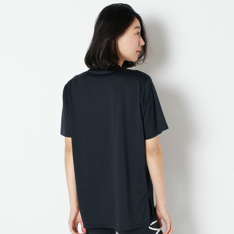 フロントの鮮やかなロゴプリントが視線を誘う、ストレッチ性に優れた薄手の生地感でさらっと着られるTシャツ。ボディラインを拾わないワイドシルエットで通気性がよく、サイドスリットが軽やかな印象の一枚です。ショートパンツやレギンスなど、あらゆるボトムとバランスよく合わせられる絶妙な丈感もポイントです。