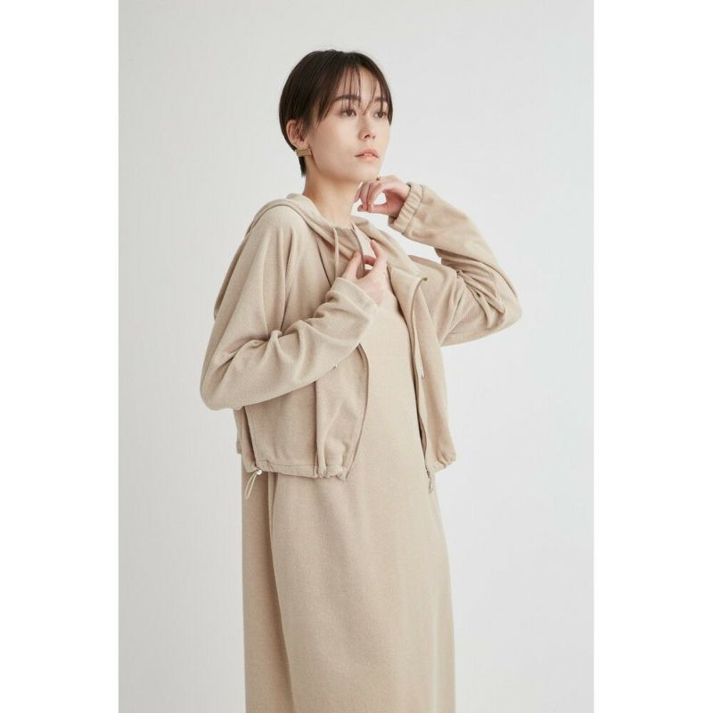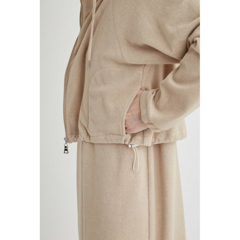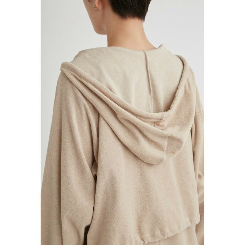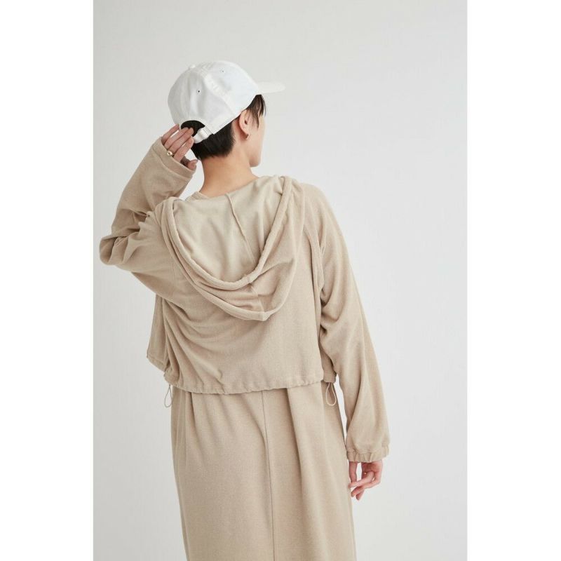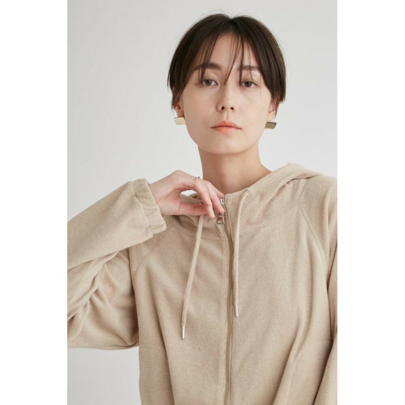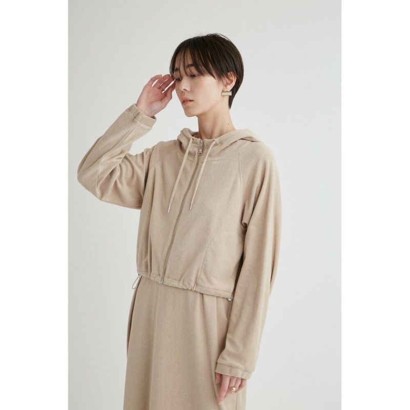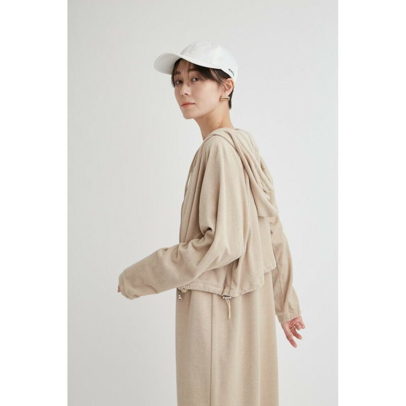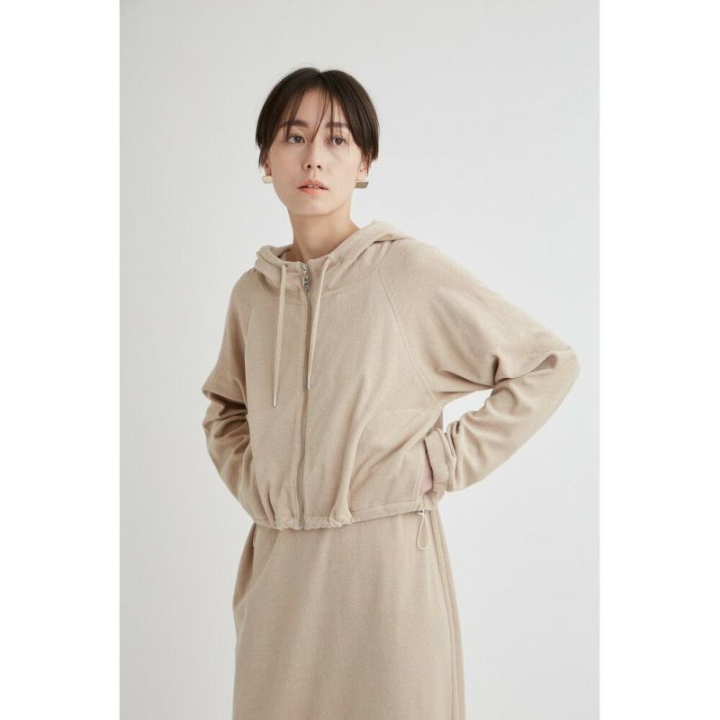 シンプルなパーカーブルゾンは、クロップド丈が女性らしい、適度なフィット感で身体を優しく包み込むシルエットのジップアップパーカー。素材の特性を活かしすっきりとしたデザインに仕上げました。