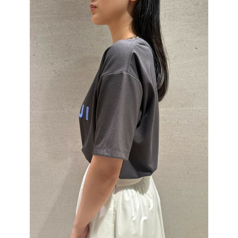 emmiのmで遊び心を表現しつつ、まとまりのあるロゴでどんなシーンにも活用できるコンパクトなTシャツ。