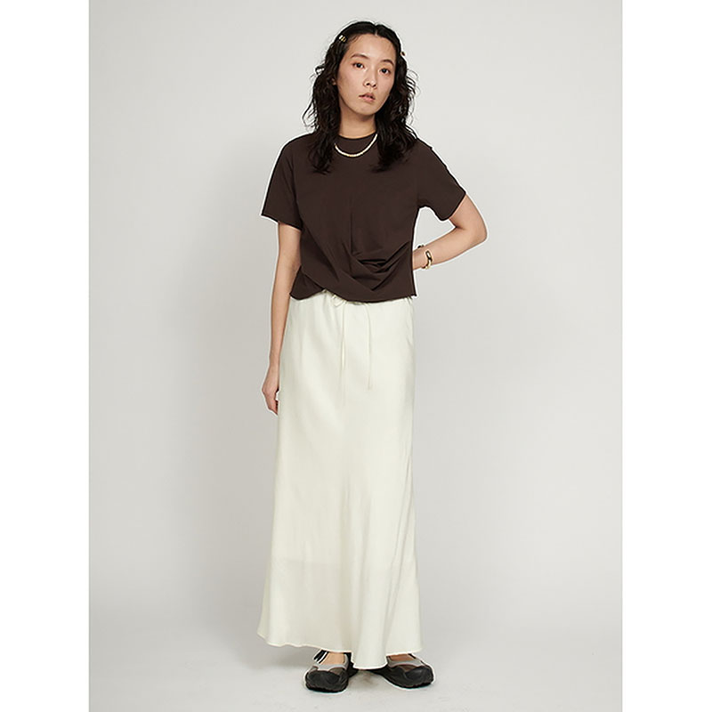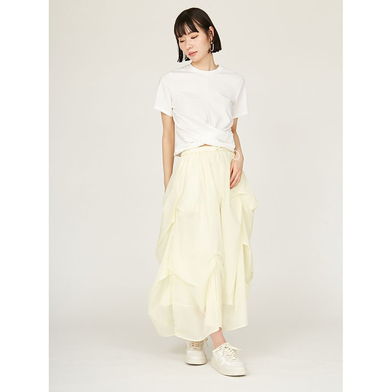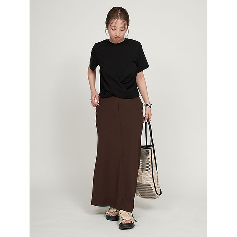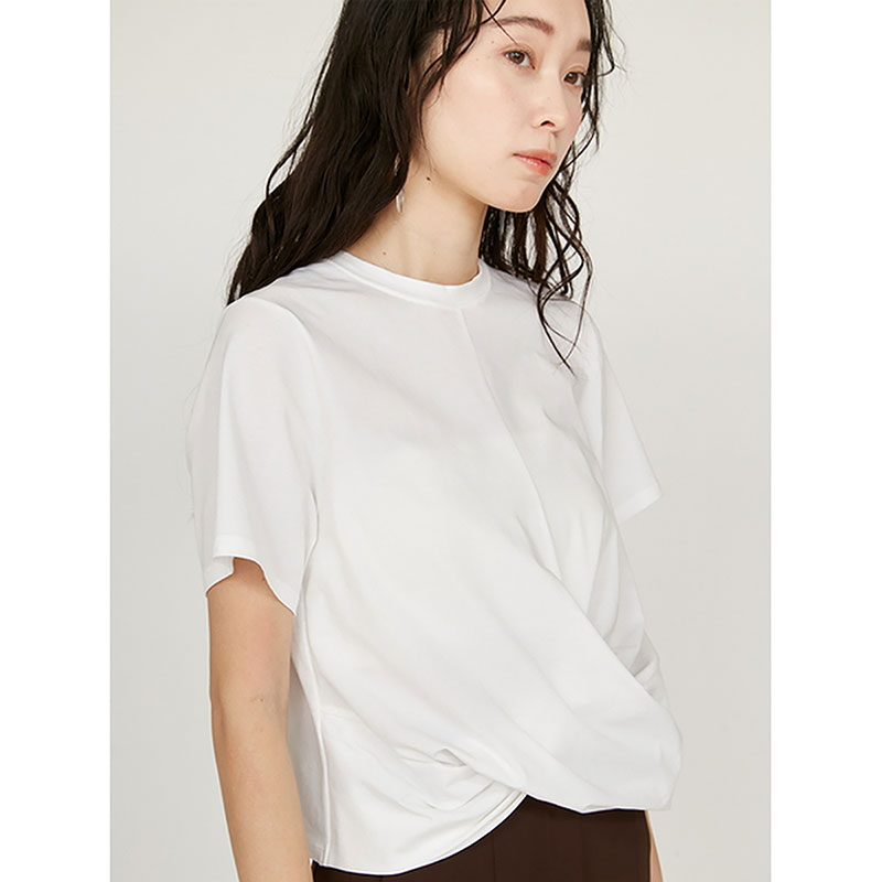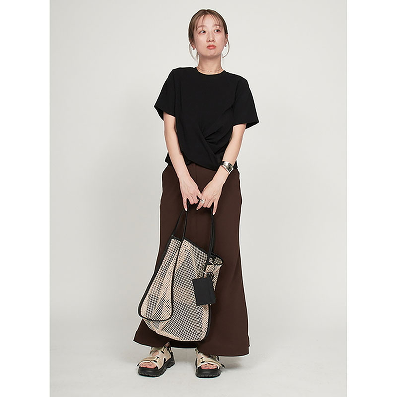 クロップド丈のねじりディテールをポイントにひとくせあるコーディネートが楽しめます。