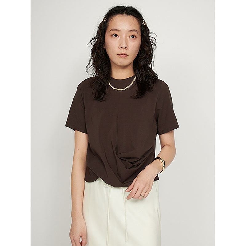 強撚糸をガス焼きした独特のドライタッチのベア天竺を使用。