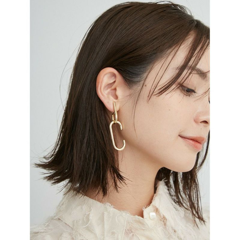 チェーンのようなモチーフのイヤリング。大振りながらぬけ感があり、繊細さと女性らしさを兼ね備えたデザインに。イヤリングで大きめのデザインのものを探している方におすすめ。