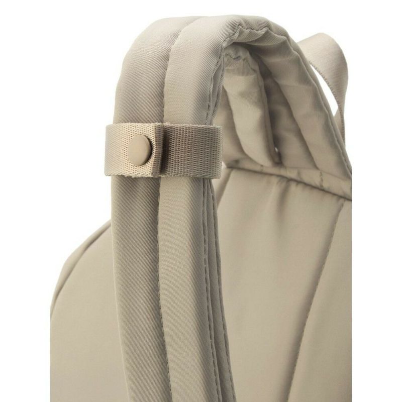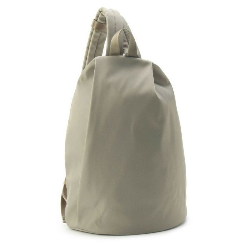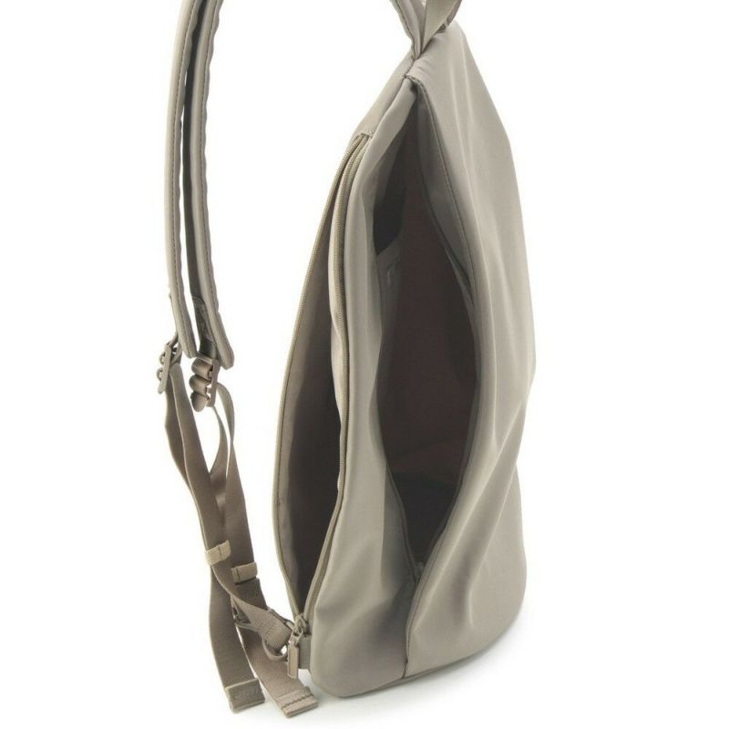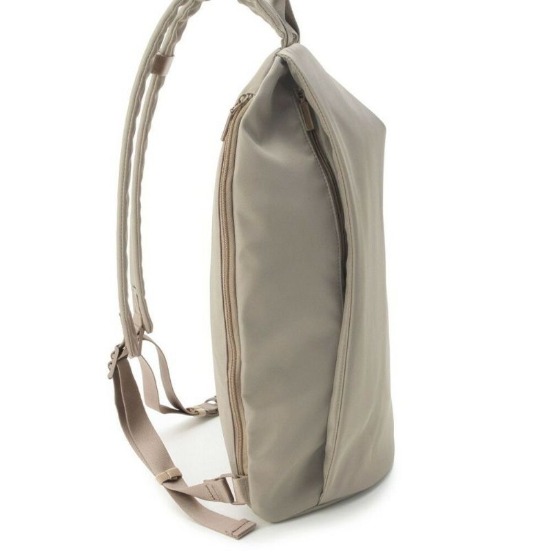 ショルダーストラップのアレンジで、ボディバッグとしても装えるバックパック。ポケットやファスナーなどを表面に出さず、ごくシンプルにデザインして、カジュアルからオンスタイルまで合わせやすいアイテムに。汚れにくい軽撥水素材も、デイリーに愛用したくなるポイントです。