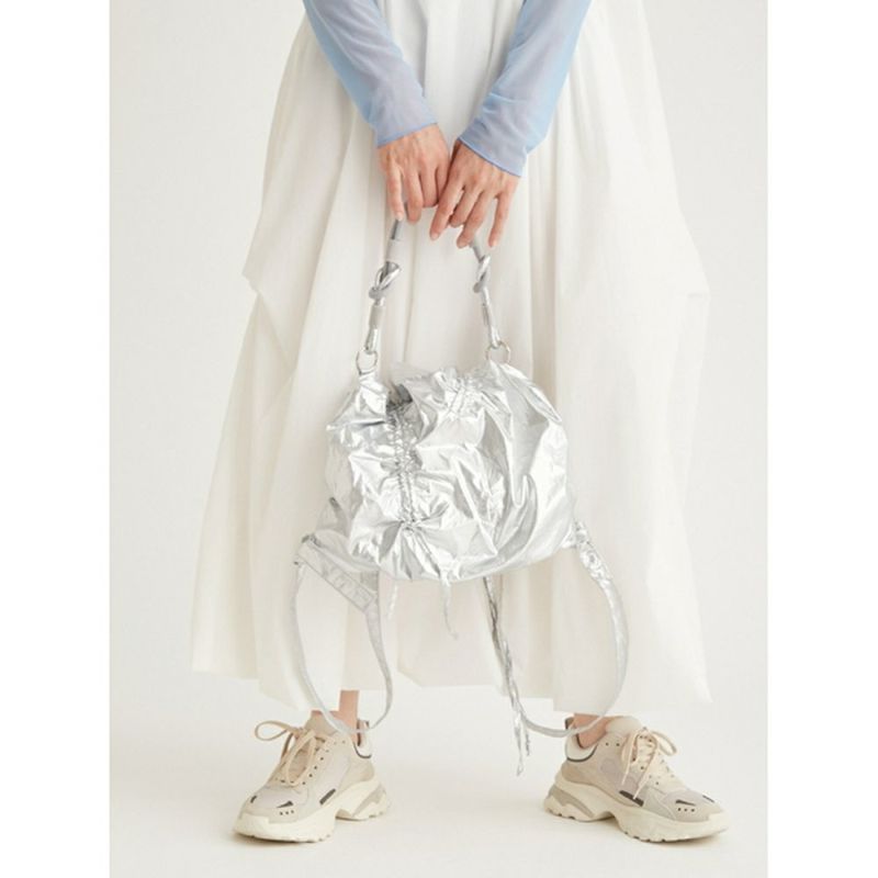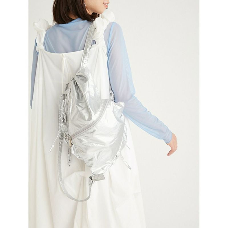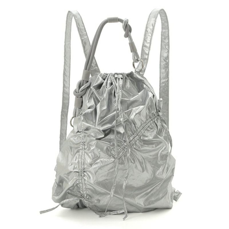 トートバッグとしても持てる2way仕様のナップザック。付属のクライミングロープの場所を付け替えるとトートバッグとしても使えます。ドロストで絞り具合を変えることもでき、スタイルに合わせてアレンジ可能。スポーティーな素材感ながら、女性らしいデザインで挑戦しやすいトレンドアイテムです。