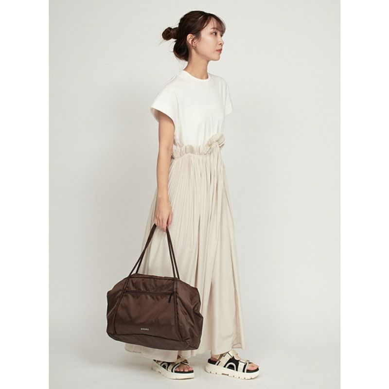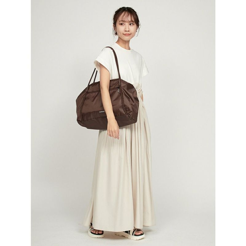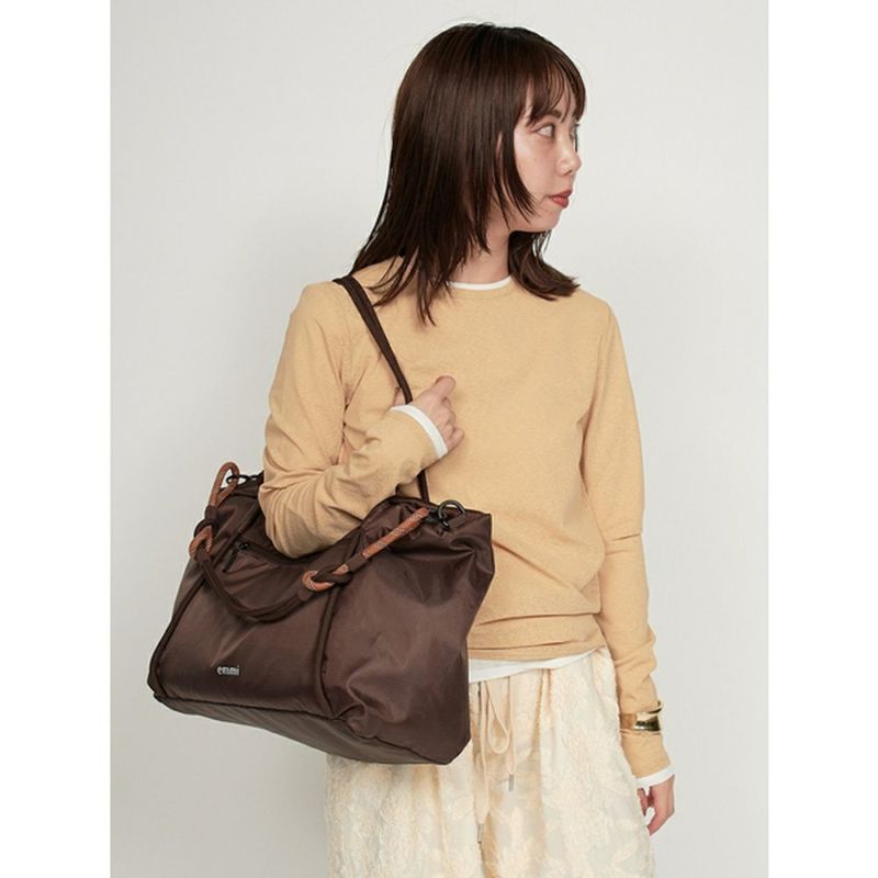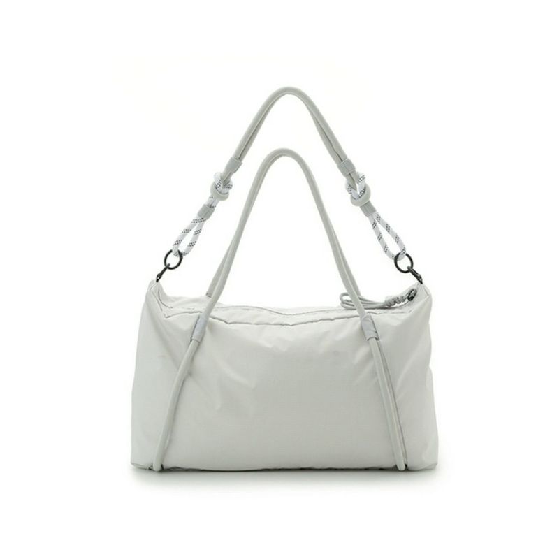 軽量でスポーティーなナイロントートバッグ。大きめサイズなのでジムに行くときや、一泊旅行などにも活躍します。ショルダー付きなので斜め掛けも可能。ファスナー付きの収納口により、荷物が飛び出る心配もありません。形はベーシックでありながら、持ち手のコードがポイントです。