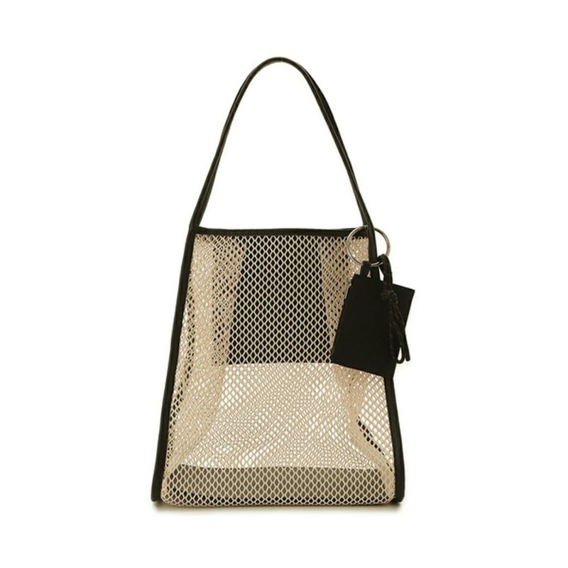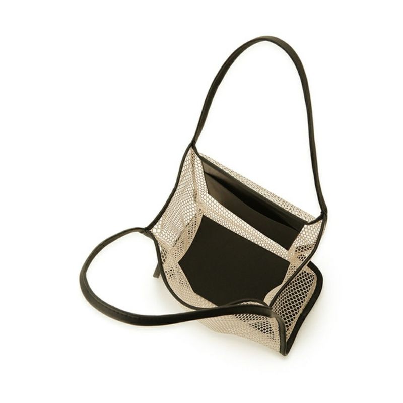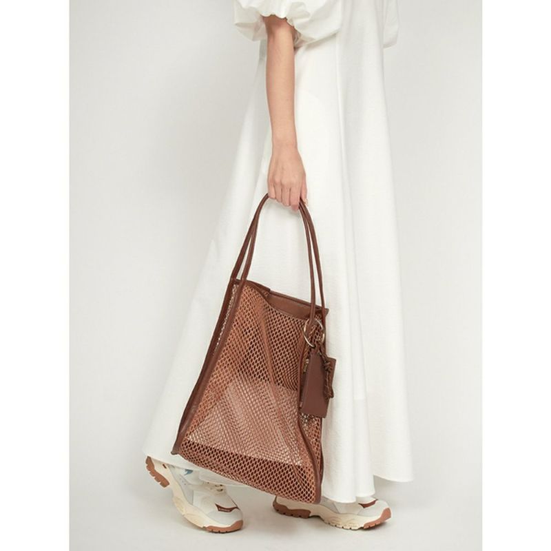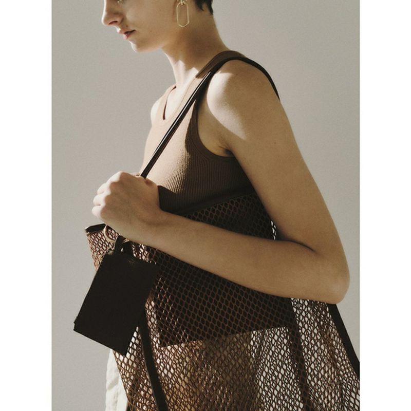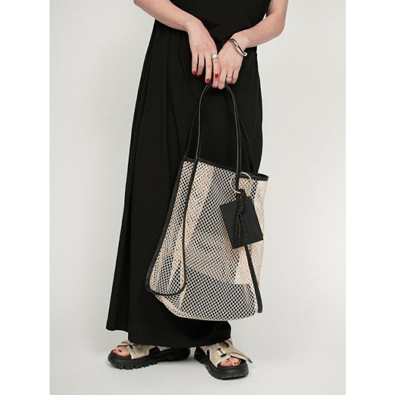 クラフト感漂う珍しいコットンのメッシュ生地と、合皮を掛け合わせたメッシュバッグ。春夏の楽ちんでカジュアルなコーディネートに合わせやすい、ラフさがポイントのアイテムです。カラーは大人っぽい3カラーで、アイボリーとネイビーはバイラカーにしているのもポイント。あえて中のものは見せて、大切なカードや小物は取り外し可能なカードケースや内ポケットに収納いただけます。またクライミングロープのチャーム付き。底板は取り外しが可能なので、使い方に合わせていただけます。