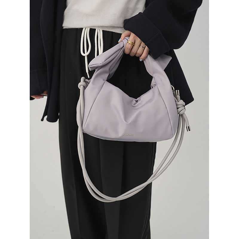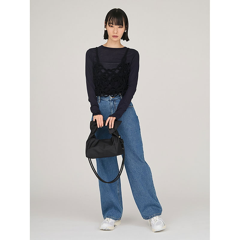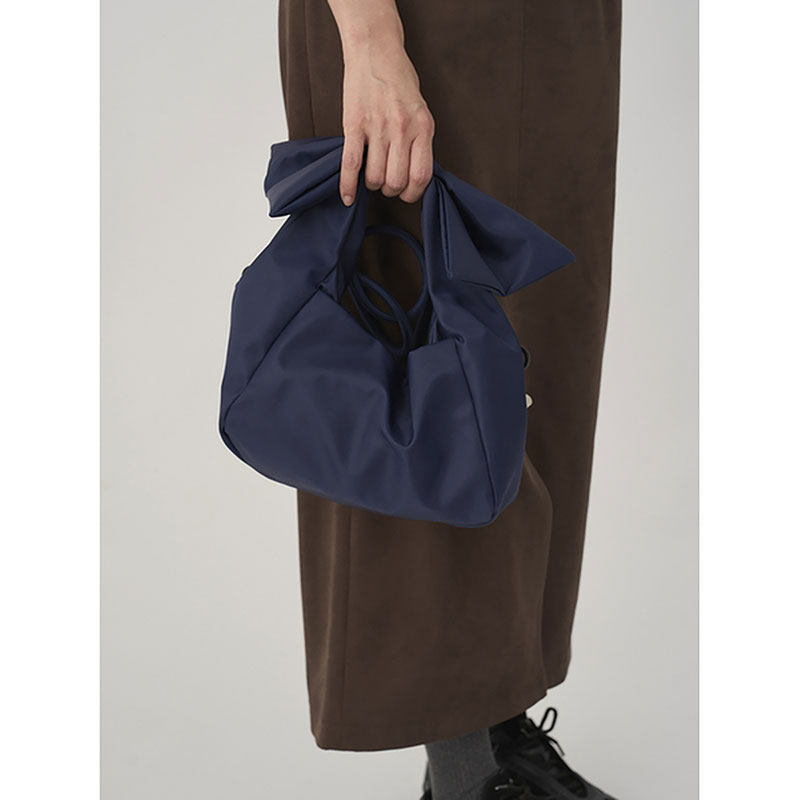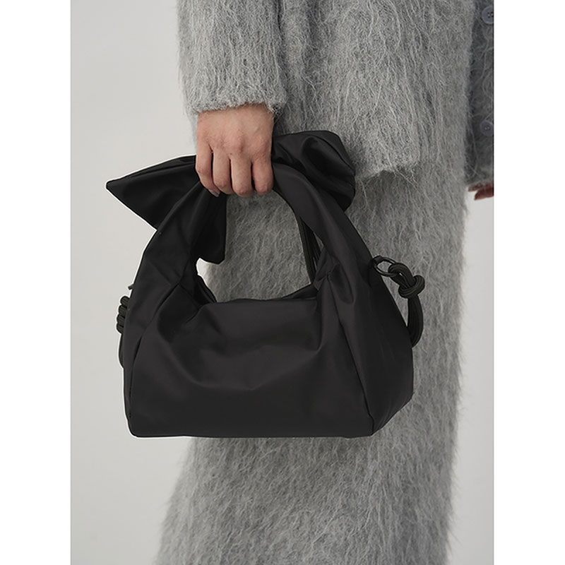 リボンデザインが施されたハンドルが特徴の小さめのバッグです。コーディネートのアクセントとして使えるデザインで、コンパクトながらも収納力もあります。さらに、ショルダーストラップは取り外し可能なので、その日のスタイルに合わせて変化できるバッグです。カジュアルやシンプルなコーディネートにアクセントとしてオススメのバッグです。