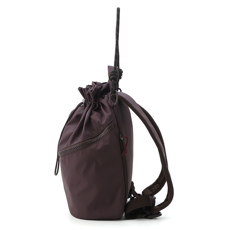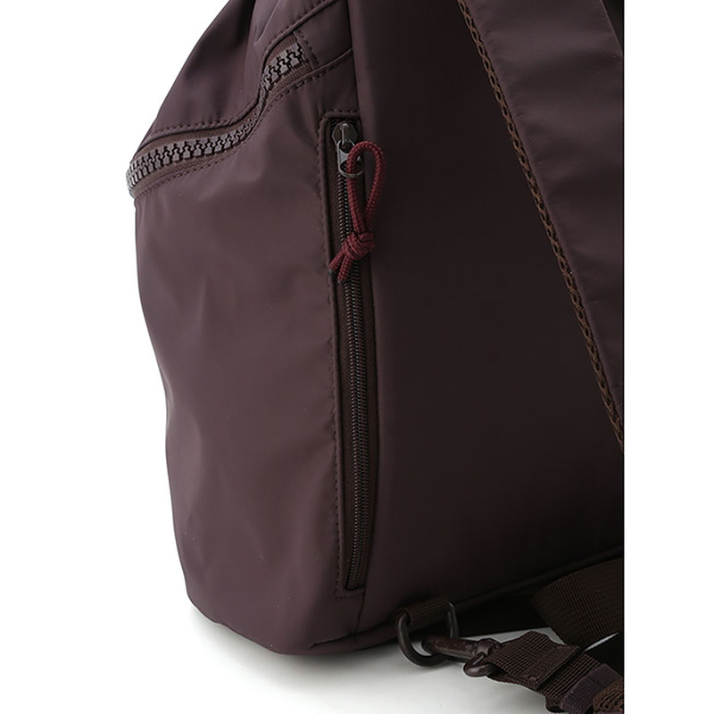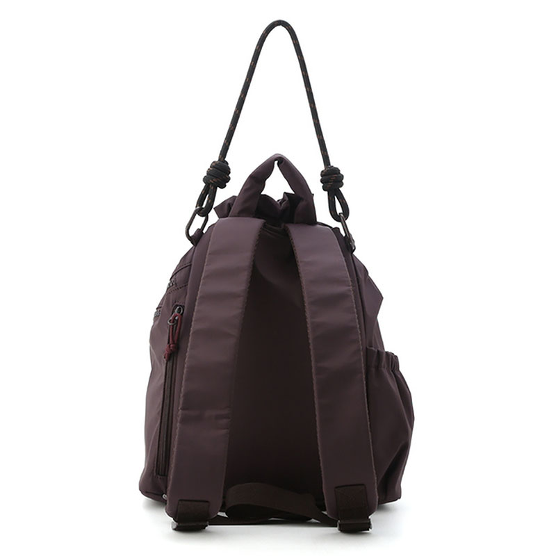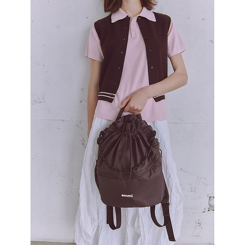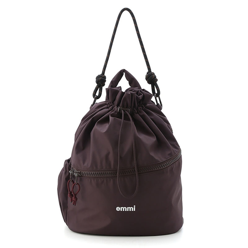 リュックサックとしてはもちろん、emmiらしいコードのショルダーハンドルで肩掛けのバックとしても。