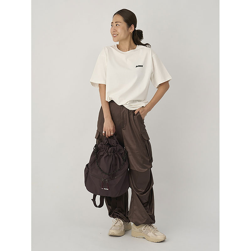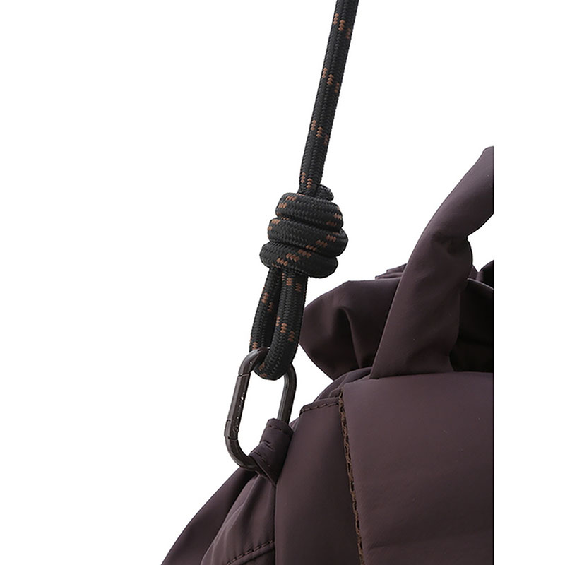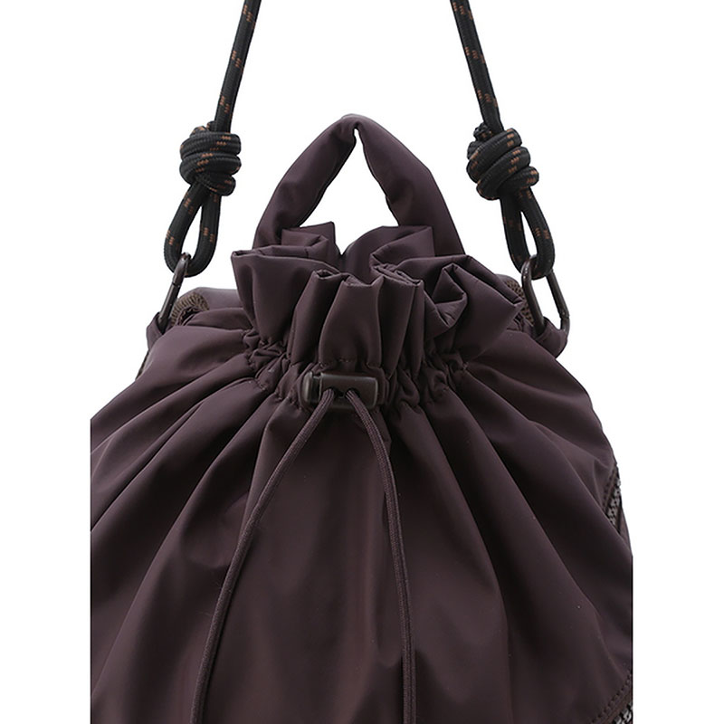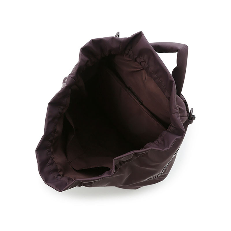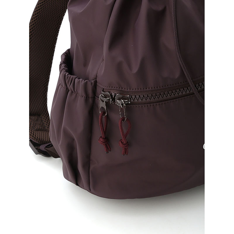 リュックサックとしてはもちろん、emmiらしいコードのショルダーハンドルで肩掛けのバックとしても。